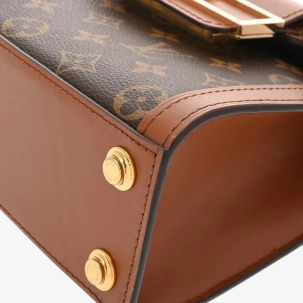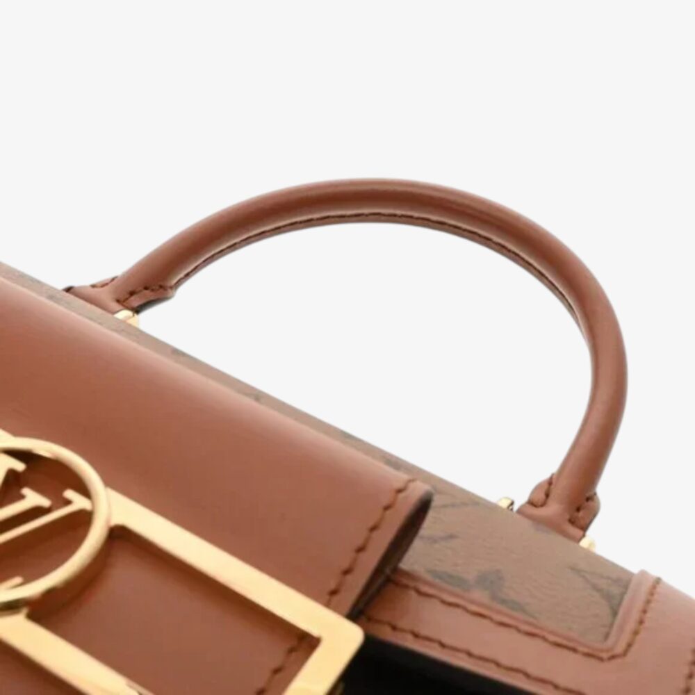 The Louis Vuitton Brown Cotton Dauphine Handbag features durable brown cotton with leather accents for refined luxury appeal. Finished with polished hardware and the classic LV push-lock clasp for elevated designer style. This luxury designer handbag offers a structured interior ideal for essentials like phone, wallet, and keys. A versatile Louis Vuitton shoulder bag perfect for day-to-evening wear with casual sophistication.