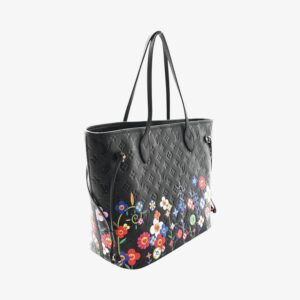 Louis Vuitton Neverfull MM in LV x TM Empreinte leather with floral motifs and refined black trim. A stylish luxury tote bag perfect for everyday elegance.