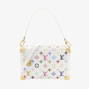 Louis Vuitton Side Trunk MM in LV x TM cowhide Monogram multicolor with white leather trim. A bold luxury handbag combining classic style and vibrant design.