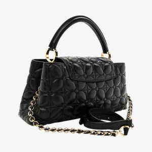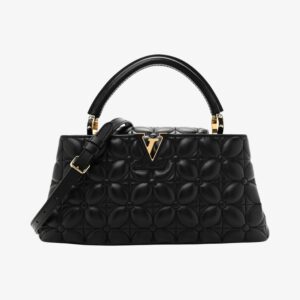 Louis Vuitton Capucines East‑West MM in black lambskin with quilted floral pattern and refined leather trim. A luxurious and stylish handbag for everyday elegance.