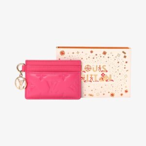 Louis Vuitton Coussin card holder in Bougainvillier lambskin with embossed Monogram and luxurious padded design. A chic luxury accessory perfect for everyday organization.
