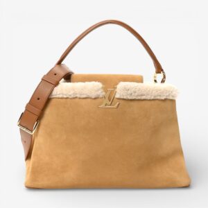 Louis Vuitton Suede Calfskin Shearling Capucines GM Souple Beige