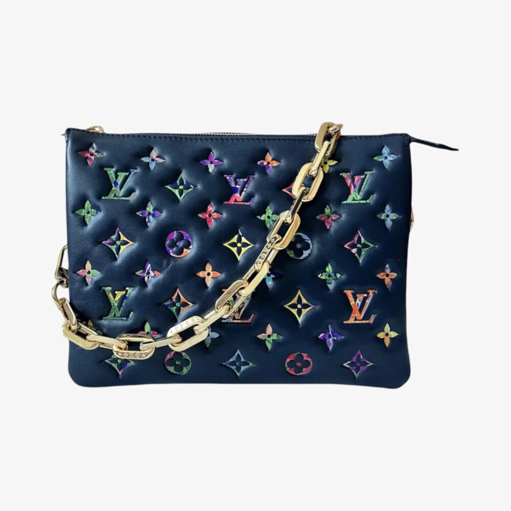 Louis Vuitton Coussin handbag in black leather with signature padded design and refined details. A stylish luxury handbag perfect for everyday elegance.