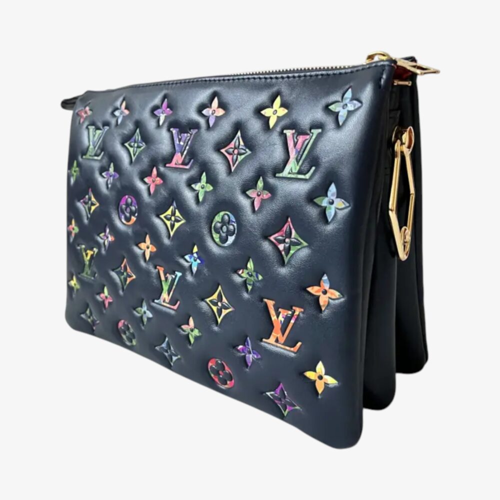 The Louis Vuitton Black Leather Coussin Handbag features premium black leather with a padded silhouette for standout luxury style. Designed with embossed LV logo and comfortable straps for versatile carry options. This luxury designer handbag offers a practical interior ideal for daily essentials with polished sophistication. A chic Louis Vuitton bag perfect for everyday wear or elevated outfits.