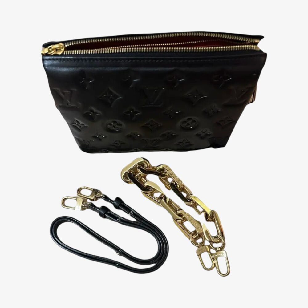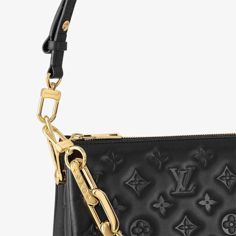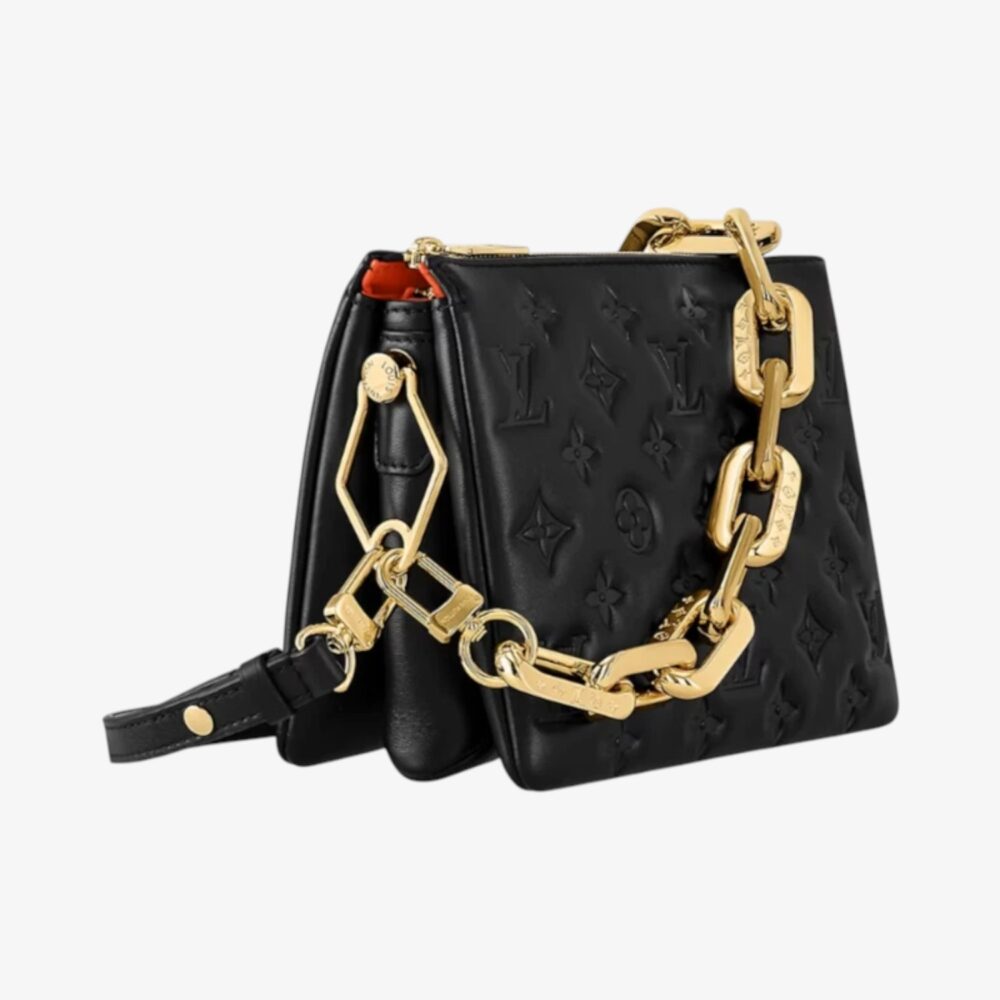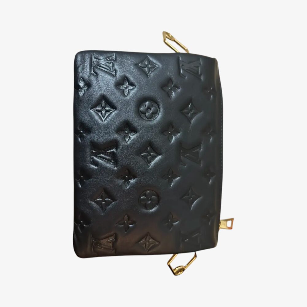 Louis Vuitton Coussin handbag in sleek black leather with signature padded design and refined details. A stylish luxury handbag perfect for everyday elegance.