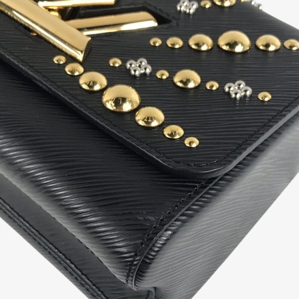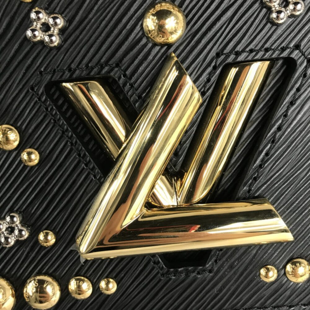 Louis Vuitton Twist handbag in classic black leather with iconic LV Twist lock and structured silhouette. A chic luxury handbag perfect for everyday elegance.