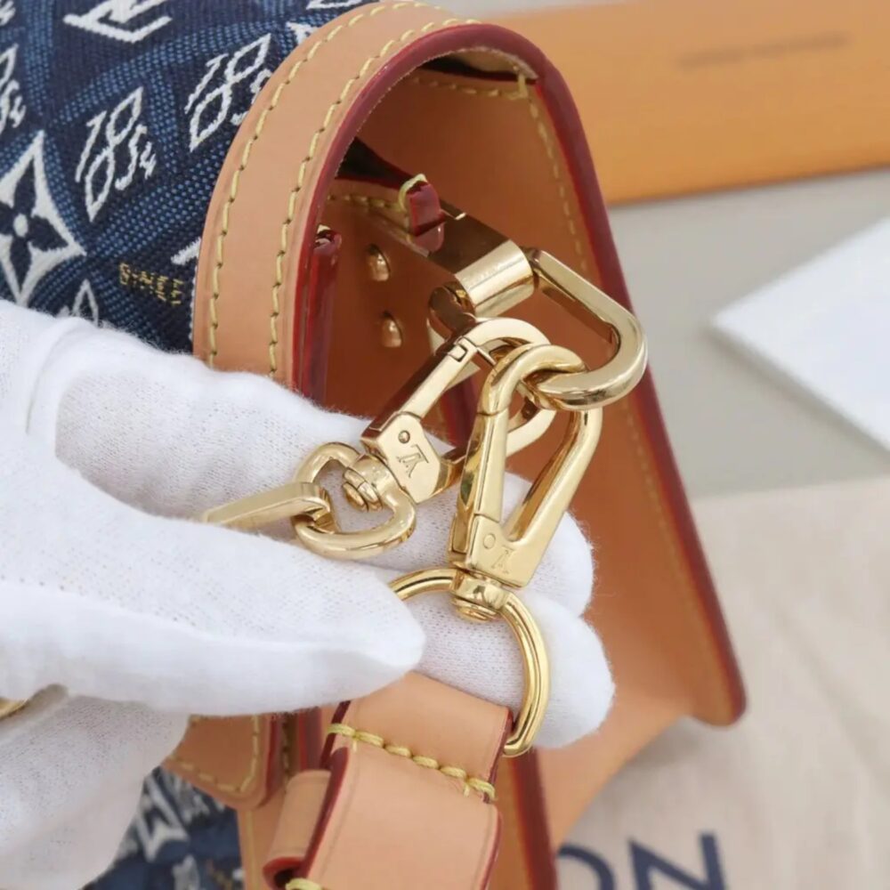 The Louis Vuitton Blue Cloth Dauphine Handbag features rich blue cloth with leather accents for refined luxury appeal. Finished with polished hardware and the iconic LV push-lock clasp for elevated designer style. This luxury designer handbag offers a structured interior ideal for essentials like phone, wallet, and keys. A versatile Louis Vuitton shoulder bag perfect for day-to-evening wear with timeless elegance.
