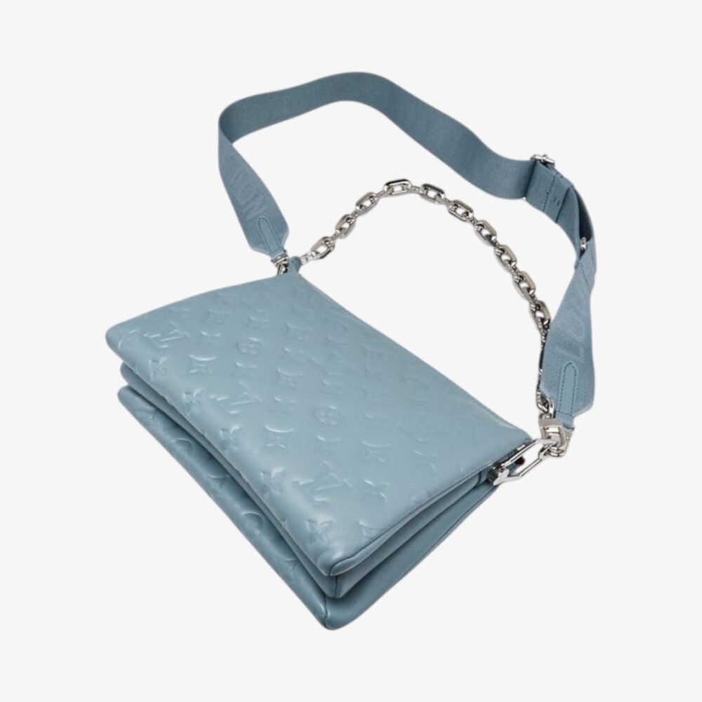 Louis Vuitton Coussin handbag in blue leather with signature padded design and refined details. A chic luxury handbag perfect for everyday elegance.