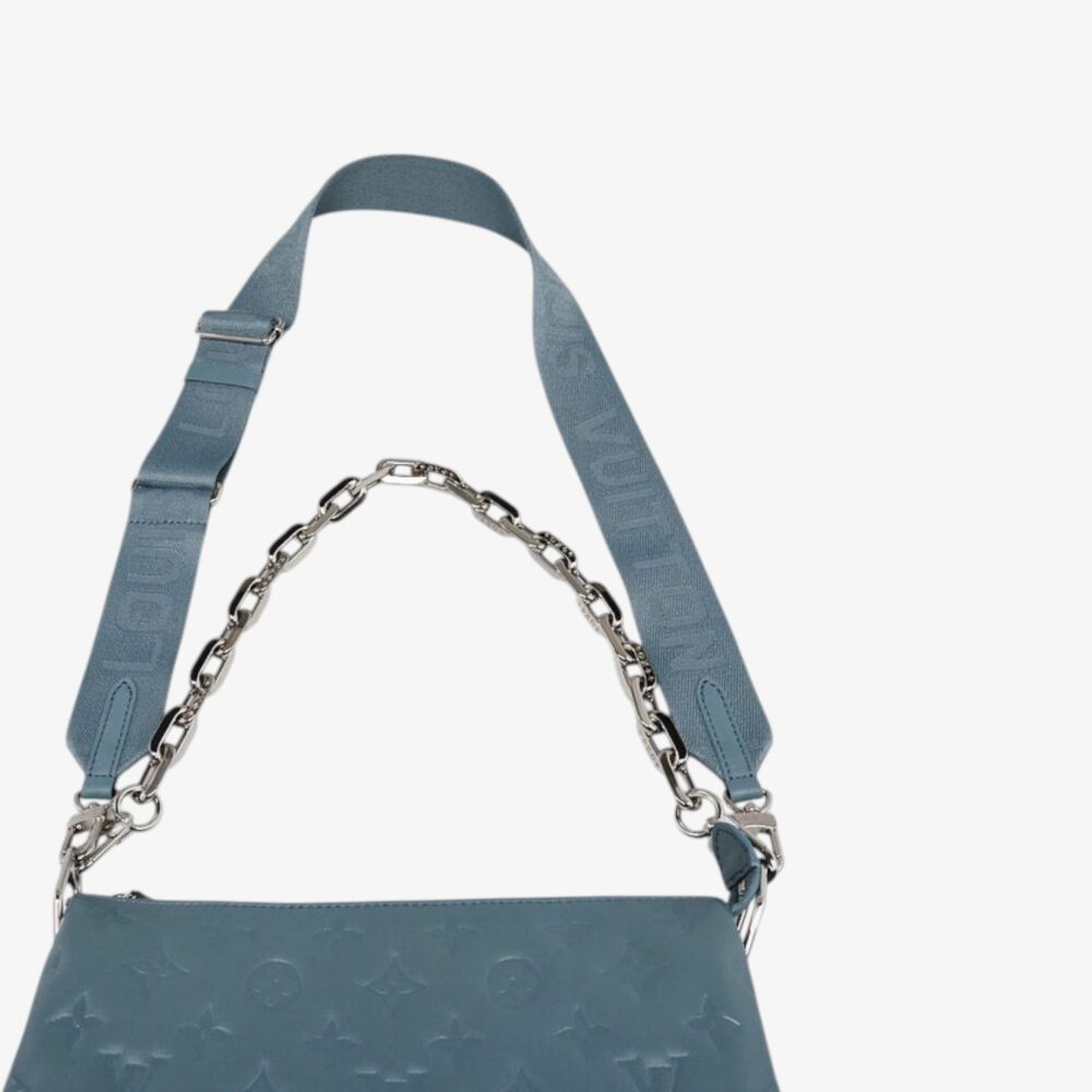 The Louis Vuitton Blue Leather Coussin Handbag features premium blue leather with a padded silhouette for standout luxury style. Designed with embossed LV logo and comfortable straps for versatile carry options. This luxury designer handbag offers a practical interior ideal for daily essentials. A stylish Louis Vuitton bag perfect for everyday wear or elevated outfits.