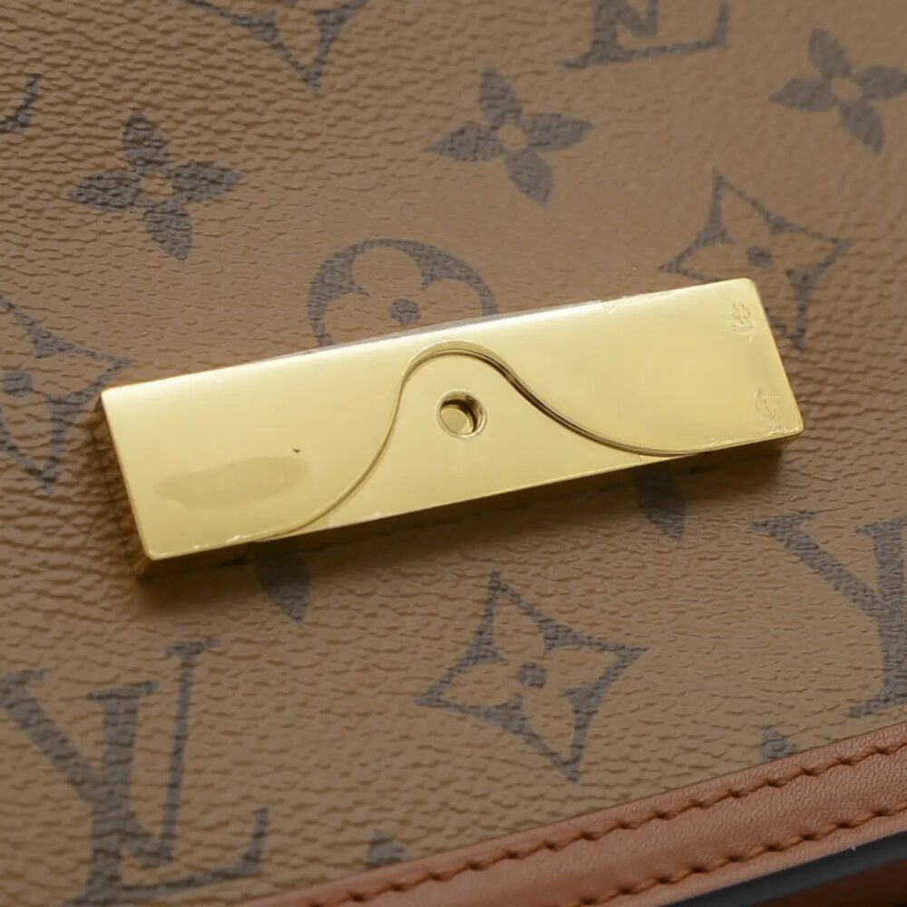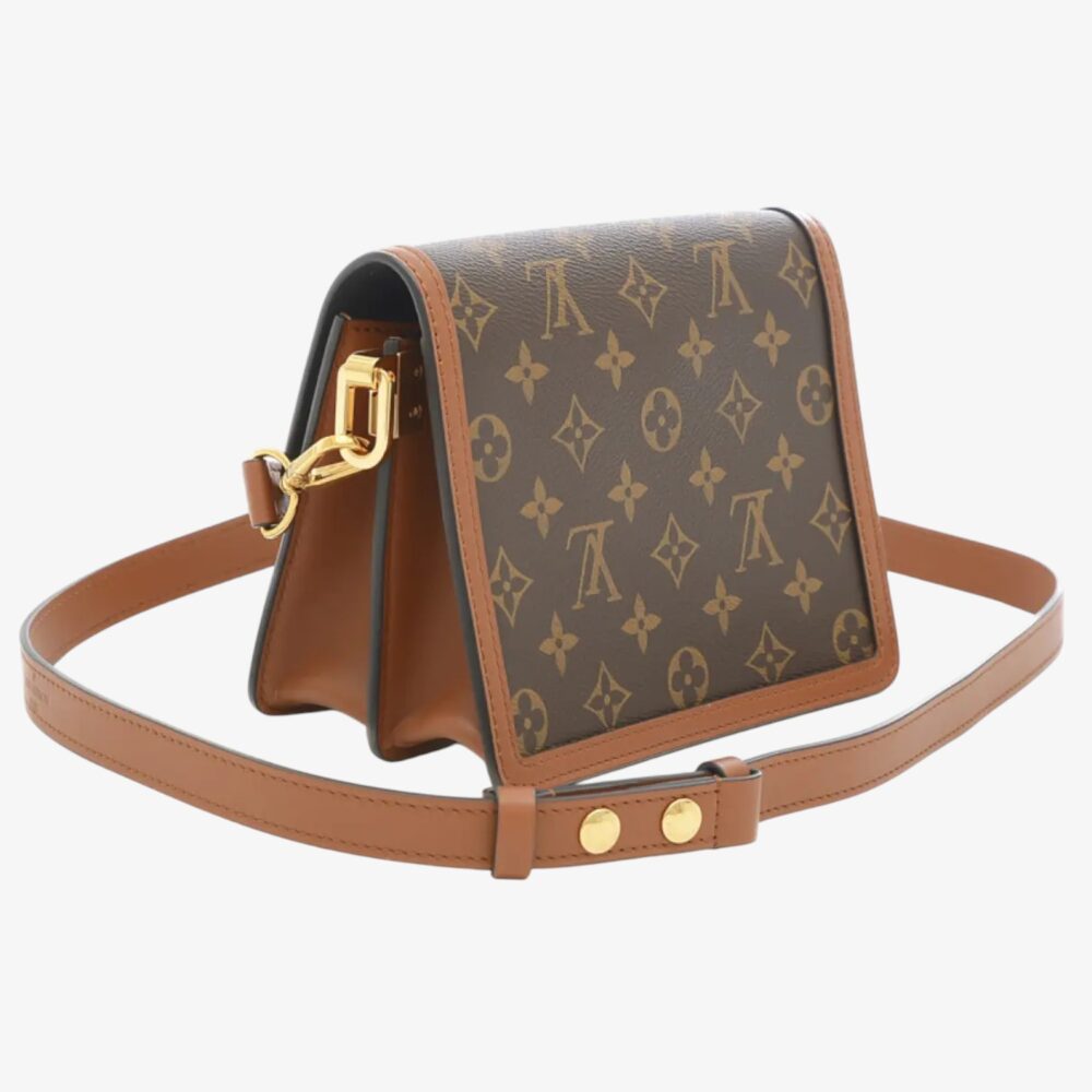 Warm Louis Vuitton Dauphine handbag in brown leather with iconic LV clasp and refined finish. A luxury shoulder bag perfect for timeless everyday elegance.