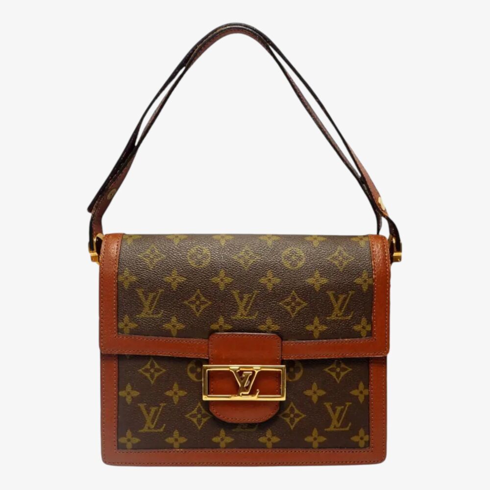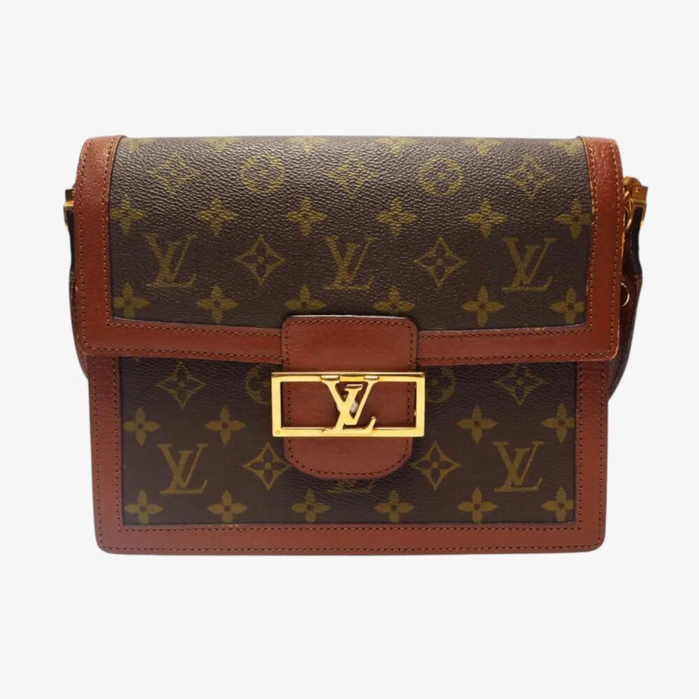Elegant Louis Vuitton Dauphine handbag in brown leather with refined detailing and signature LV clasp. A luxury shoulder bag perfect for timeless everyday style.