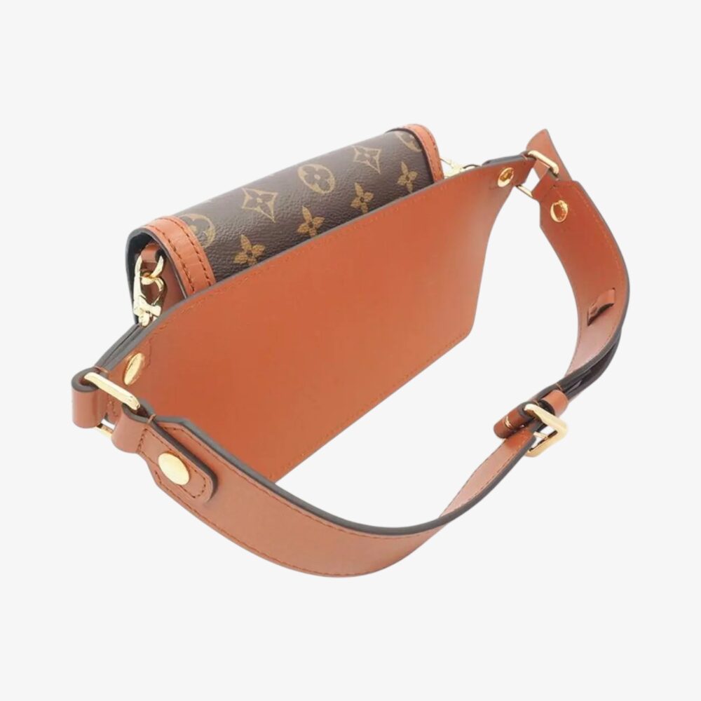 The Louis Vuitton Brown Leather Dauphine Handbag features smooth brown leather for classic luxury appeal. Finished with polished hardware and the iconic LV push-lock clasp for elevated designer style. This luxury designer handbag offers a structured interior ideal for essentials like phone, wallet, and keys. A versatile Louis Vuitton shoulder bag perfect for day-to-evening wear with sophisticated style.