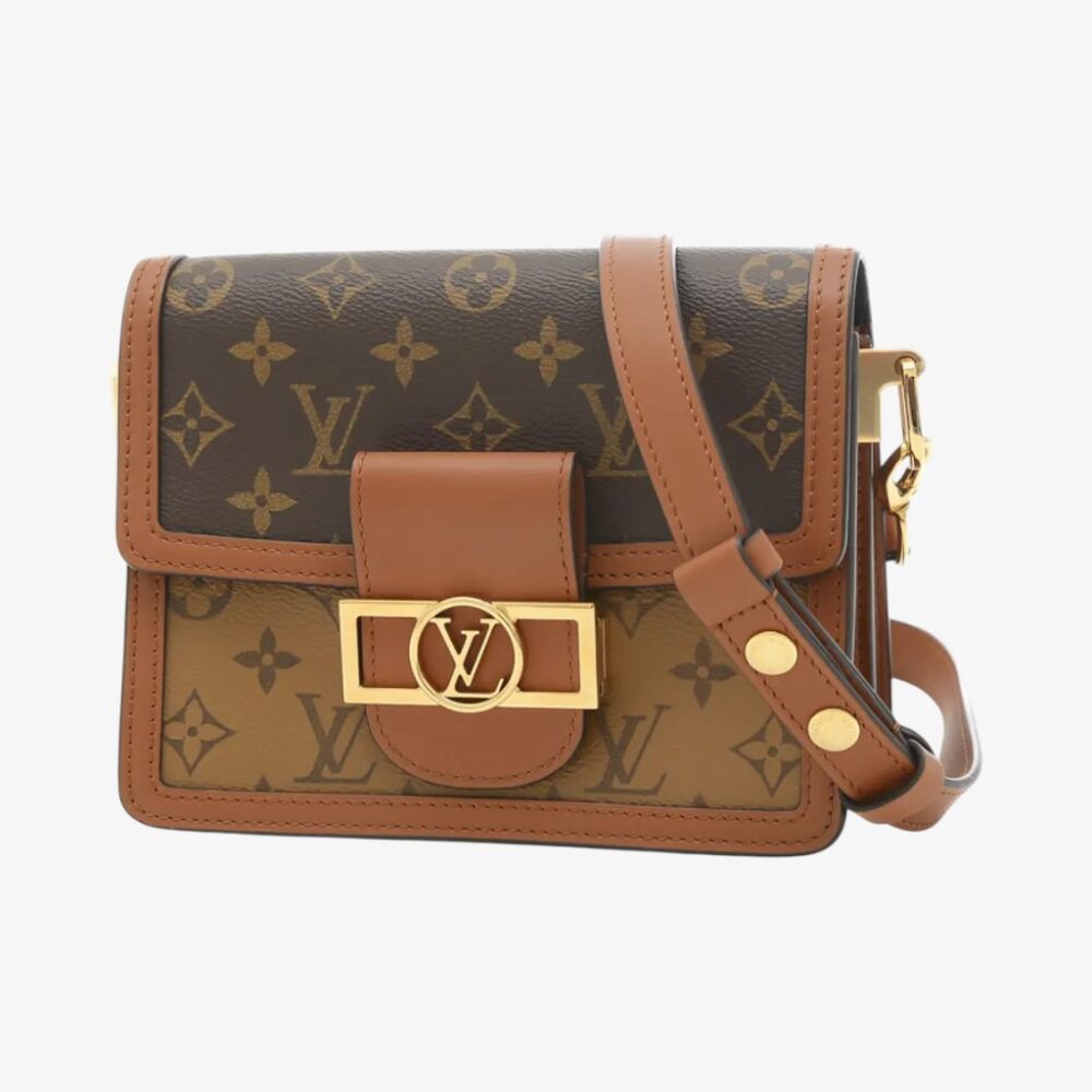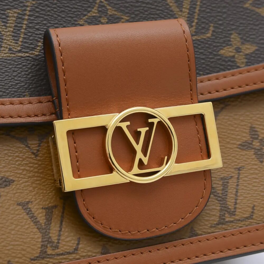 Warm Louis Vuitton Dauphine handbag in brown leather with iconic LV clasp and refined finish. A luxury shoulder bag perfect for timeless everyday elegance.