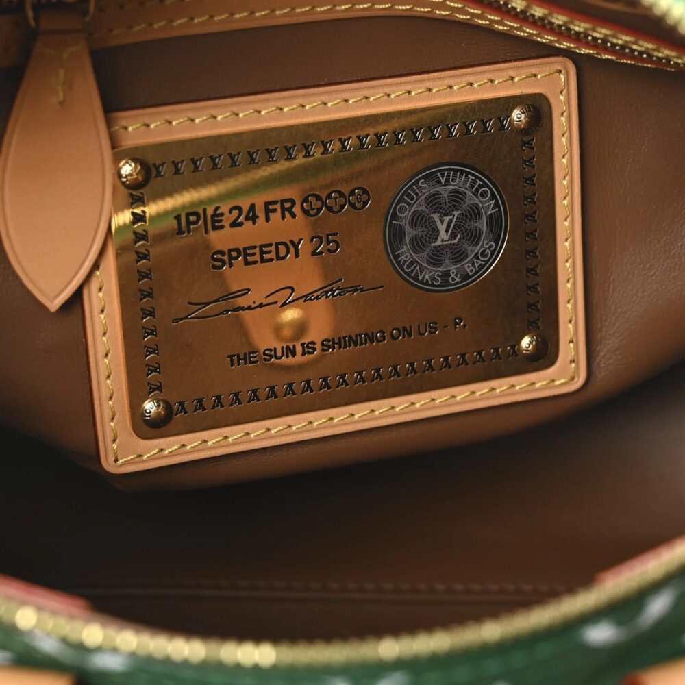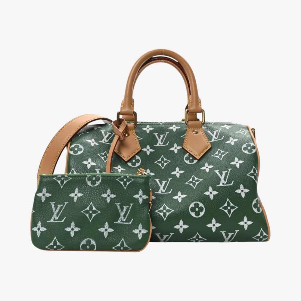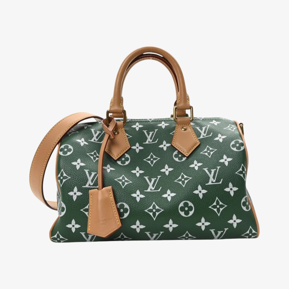 Louis Vuitton Speedy P9 Bandoulière 25 in Monogram calfskin with rich green accents and refined leather trim. A stylish luxury handbag perfect for everyday use.