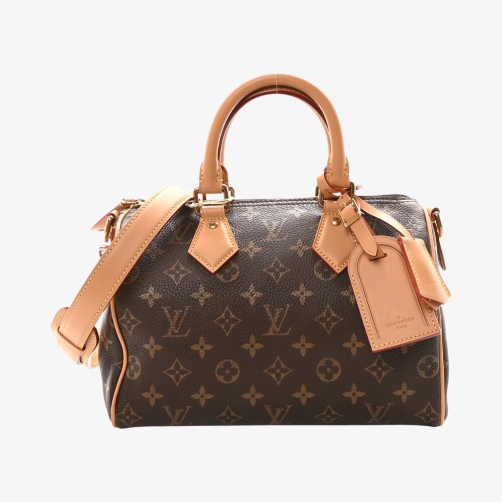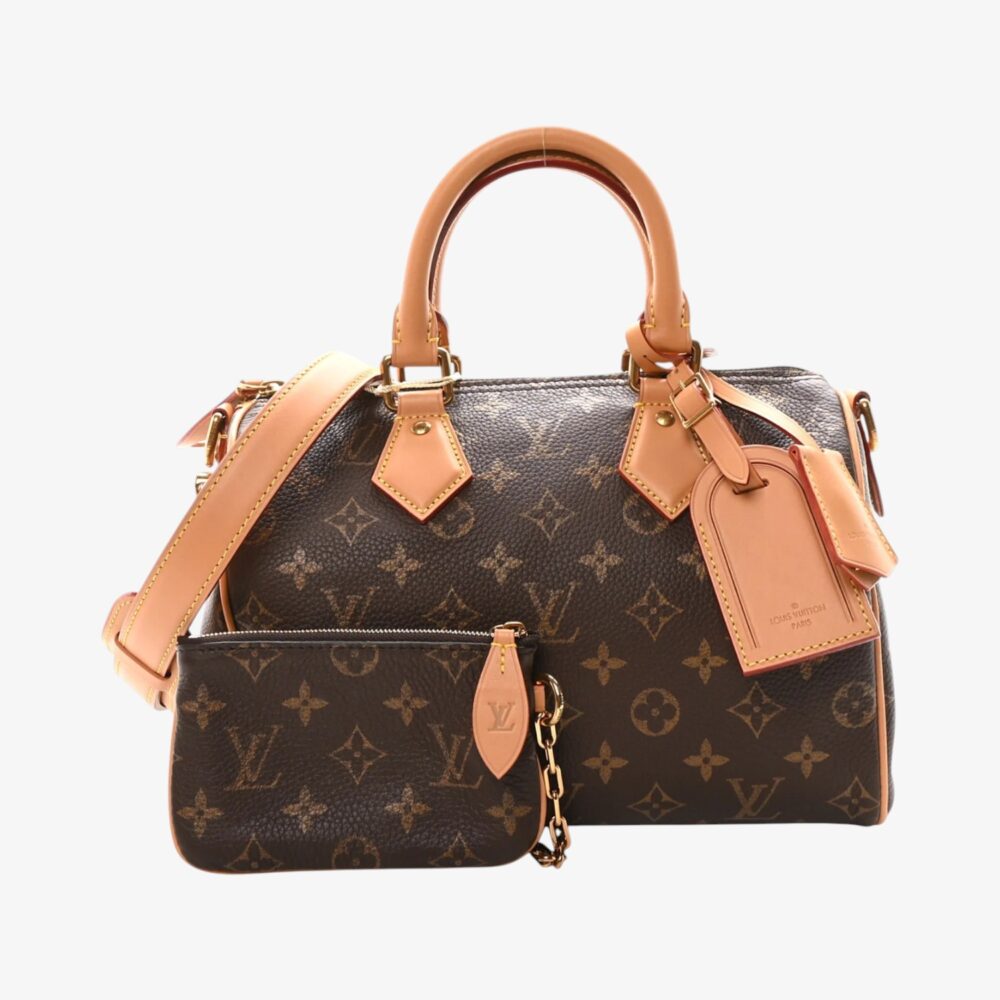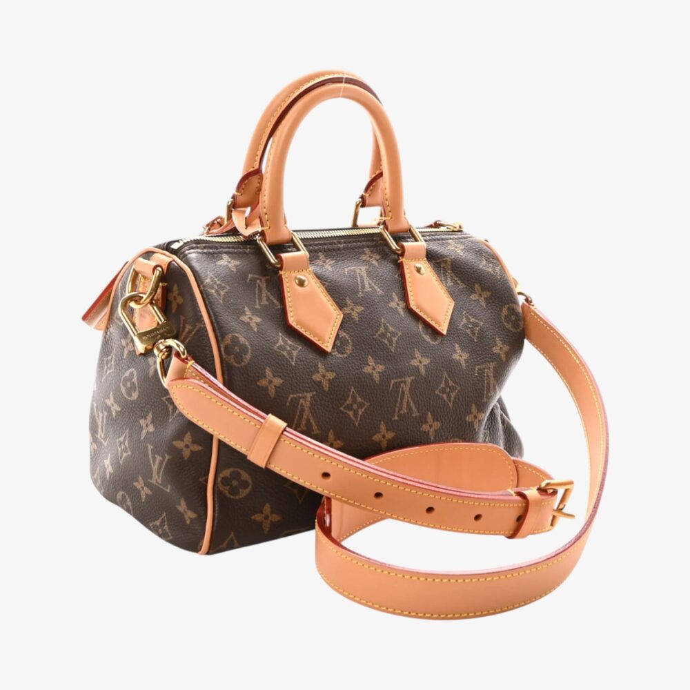 Louis Vuitton Speedy P9 Bandoulière 25 in Monogram calfskin with refined leather trim and polished hardware. A compact and elegant luxury handbag for everyday use.