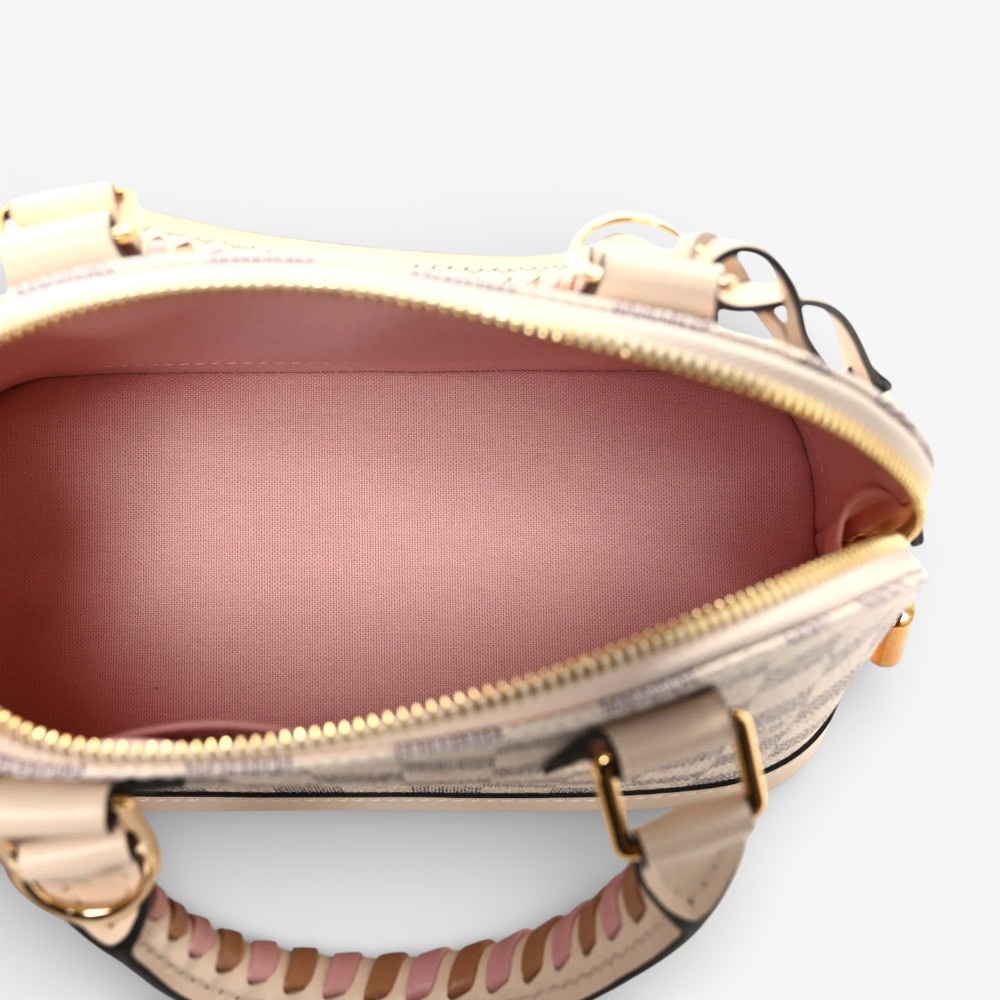 The Louis Vuitton Damier Azur Braided Alma BB features elegant Damier Azur canvas paired with braided leather handles for standout luxury style. Designed with a structured silhouette and polished hardware for timeless appeal. This luxury designer handbag offers a compact interior ideal for daily essentials with refined sophistication. A stylish Louis Vuitton mini tote perfect for everyday use or elevated casual outfits.