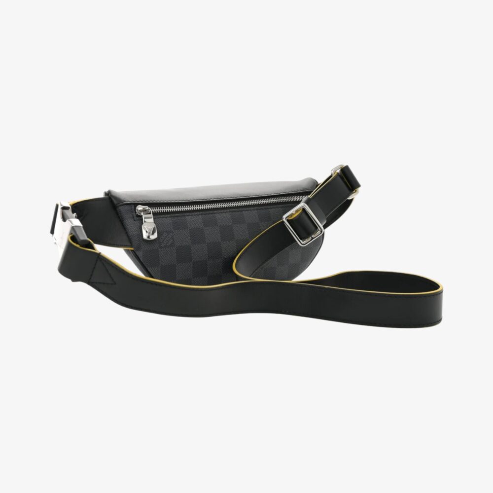 Modern Louis Vuitton Bumbag in Damier Graphite canvas with striking yellow accents. A luxury hands-free bag perfect for carrying daily essentials with bold style.