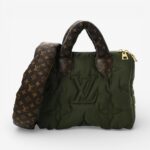 The Louis Vuitton Econyl Mini Monogram Pillow Speedy Bandoulière 25 Khaki features eco-friendly Econyl Monogram fabric with soft pillow-style quilting for standout luxury style. Designed with leather top handles and an adjustable shoulder strap for versatile carry options. This luxury designer handbag offers a roomy interior ideal for daily essentials with polished sophistication. A stylish Louis Vuitton mini bag perfect for everyday use or elevated casual outfits.