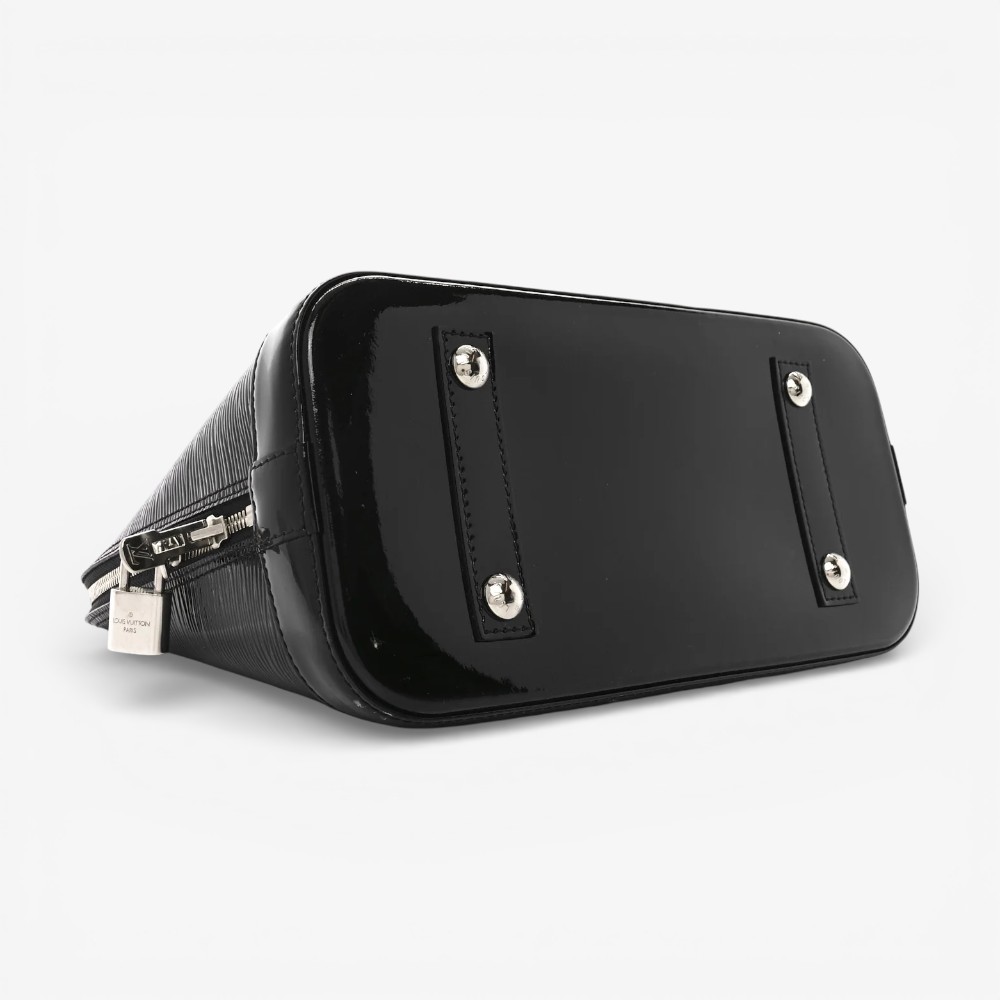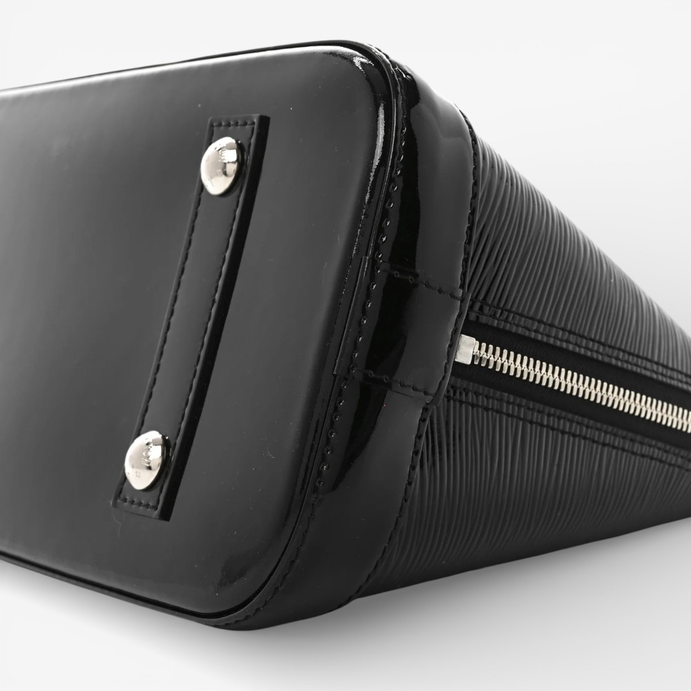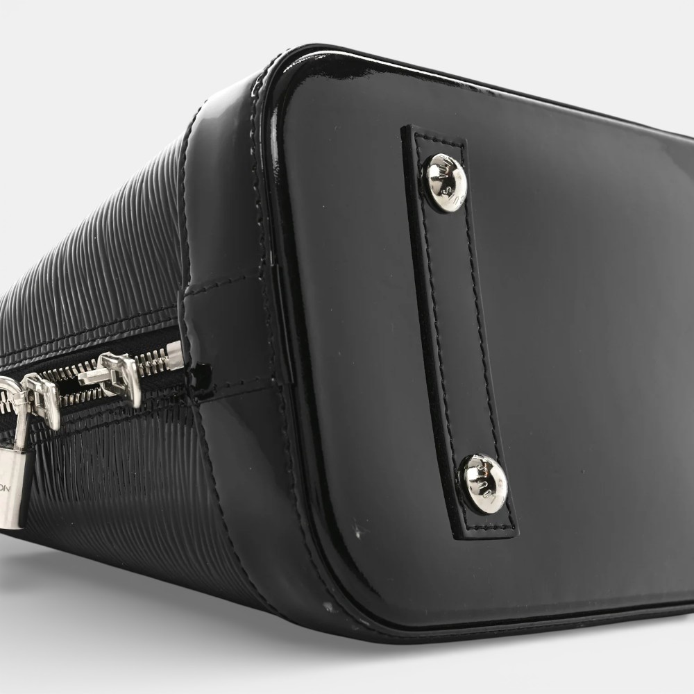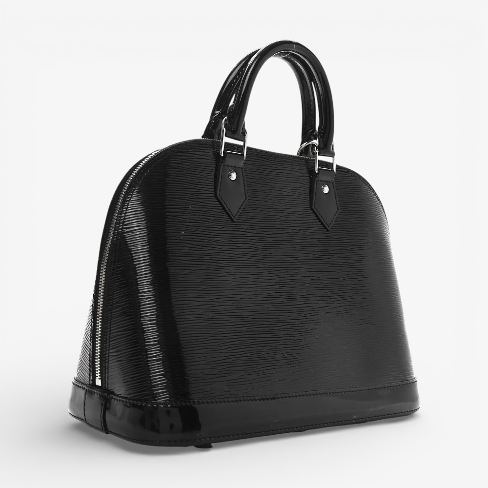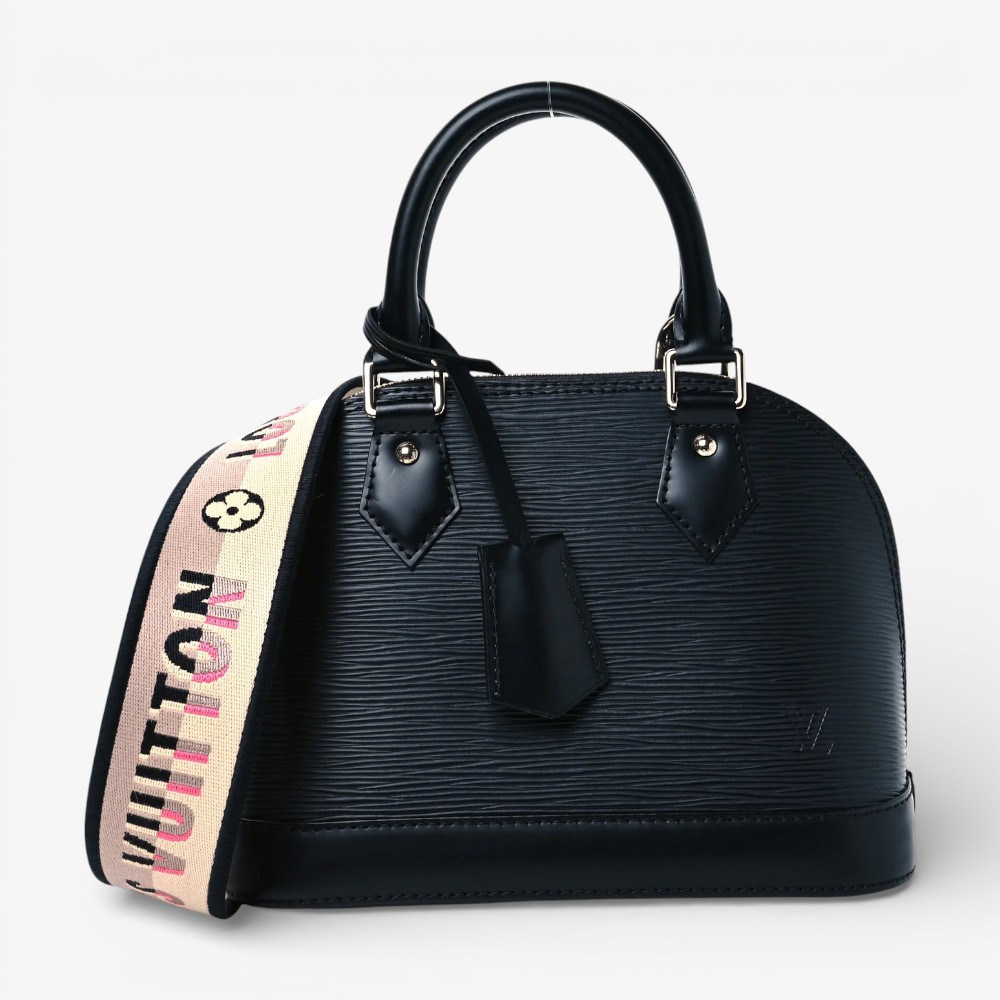 Louis Vuitton Alma PM in bold electric black Epi leather with refined trim and polished hardware. A chic luxury handbag perfect for everyday sophistication.