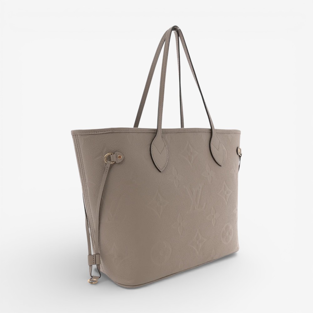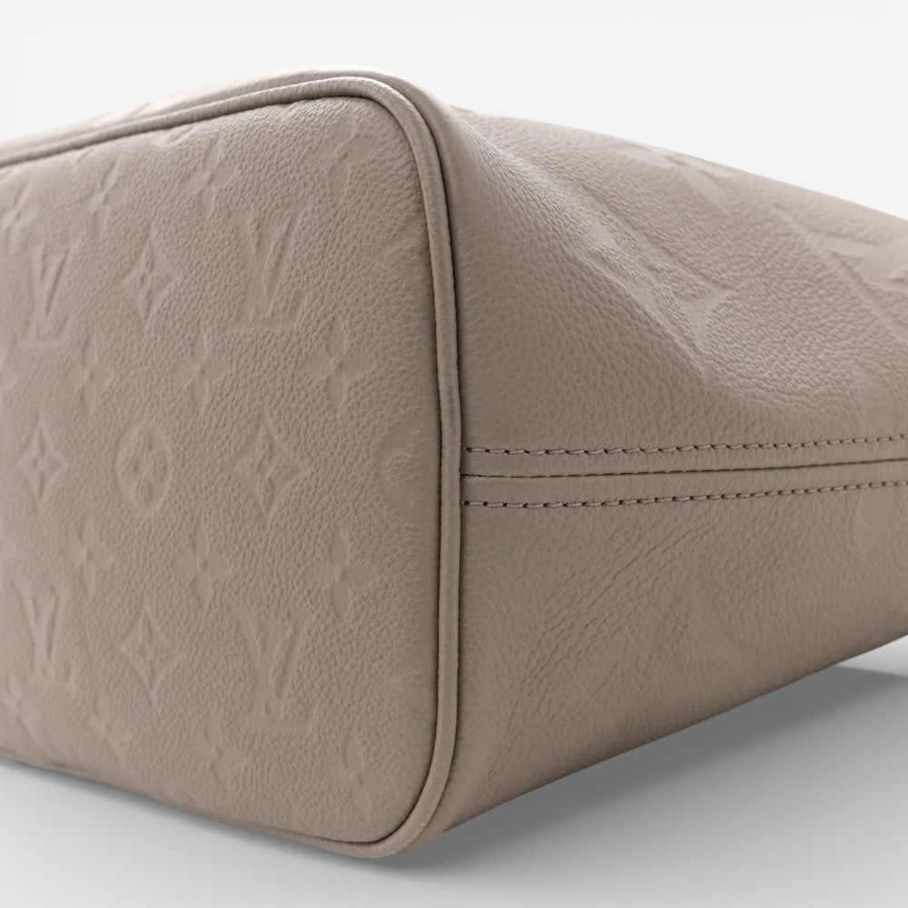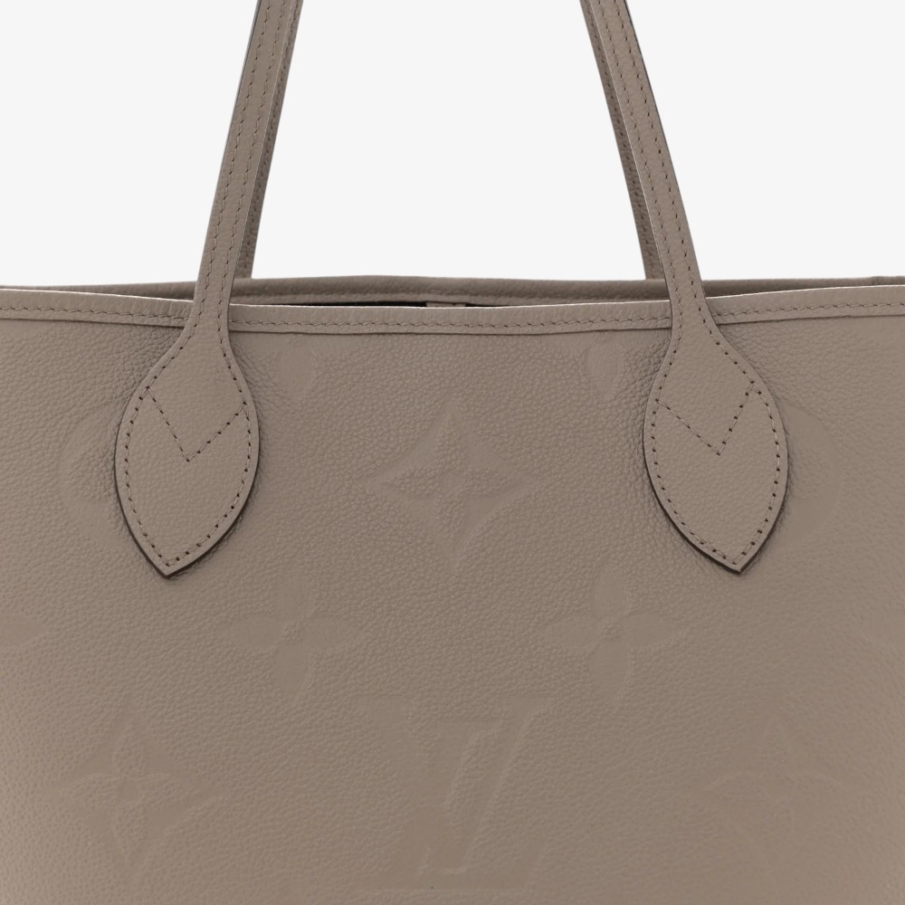Louis Vuitton Neverfull MM in embossed Empreinte Monogram Giant leather with subtle tourterelle tones. A stylish luxury tote bag perfect for everyday elegance.