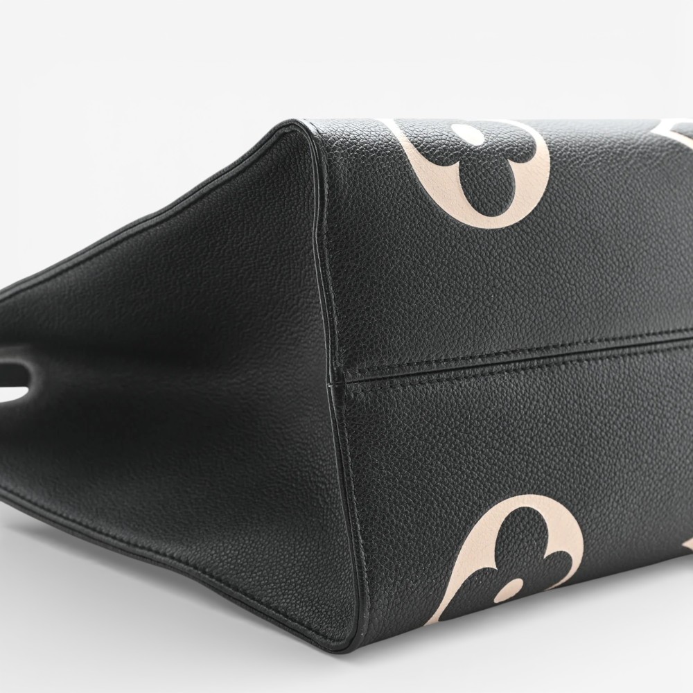 The Louis Vuitton Empreinte Monogram Giant Onthego GM Black Beige features bold embossed Monogram Giant leather in classic black and beige hues for standout luxury style. Designed with leather top handles and long shoulder straps for versatile, comfortable carry options. This luxury designer tote bag offers a roomy interior ideal for daily essentials with refined sophistication. A chic Louis Vuitton tote bag perfect for everyday use or elevated casual outfits.