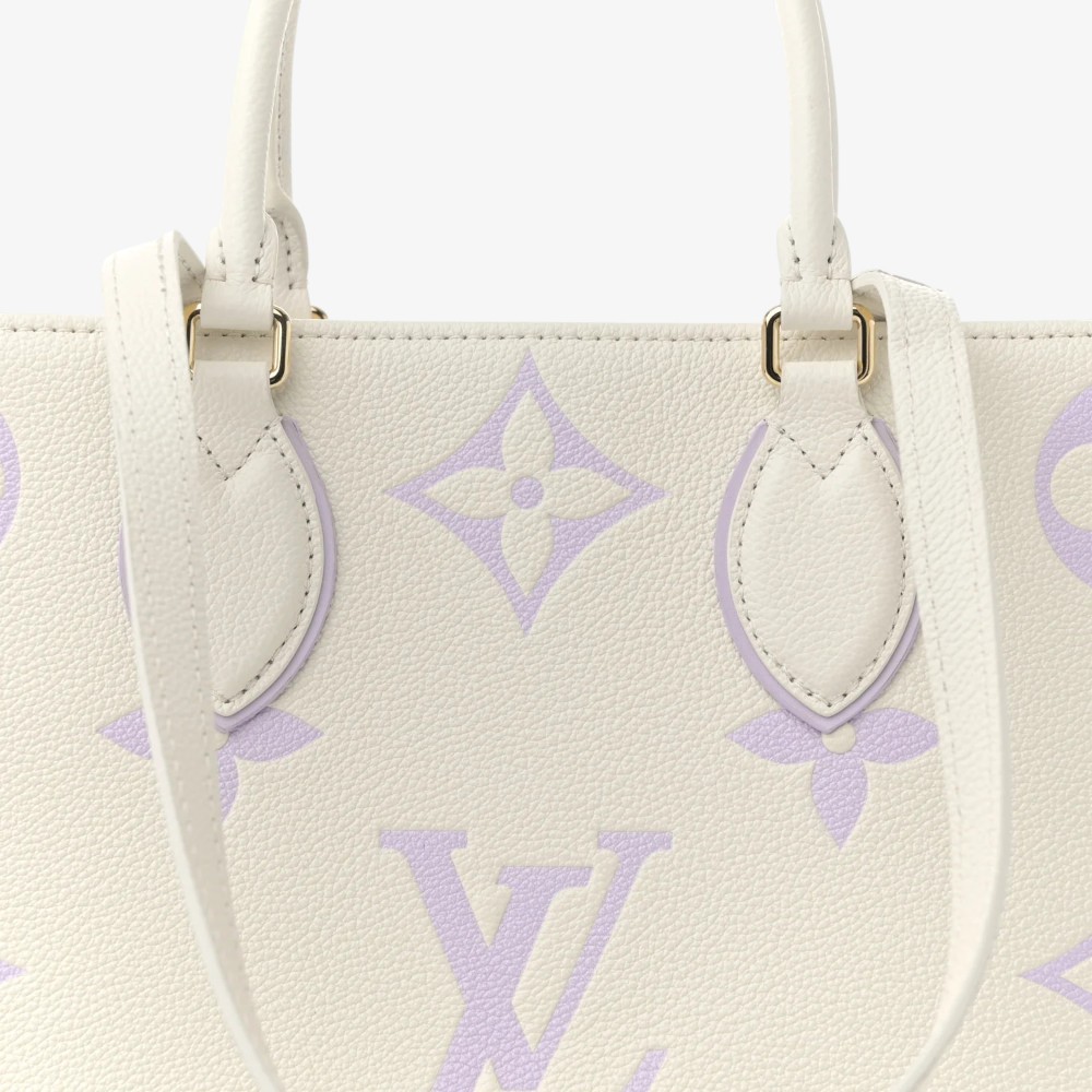 The Louis Vuitton Empreinte Monogram Giant Onthego MM Latte Bubble Tea features bold embossed Monogram Giant leather in warm latte and bubble tea tones for standout luxury style. Designed with leather top handles and long shoulder straps for versatile, comfortable carry options. This luxury designer tote bag offers a roomy interior ideal for daily essentials with polished sophistication. A chic Louis Vuitton tote bag perfect for everyday use or elevated casual outfits.