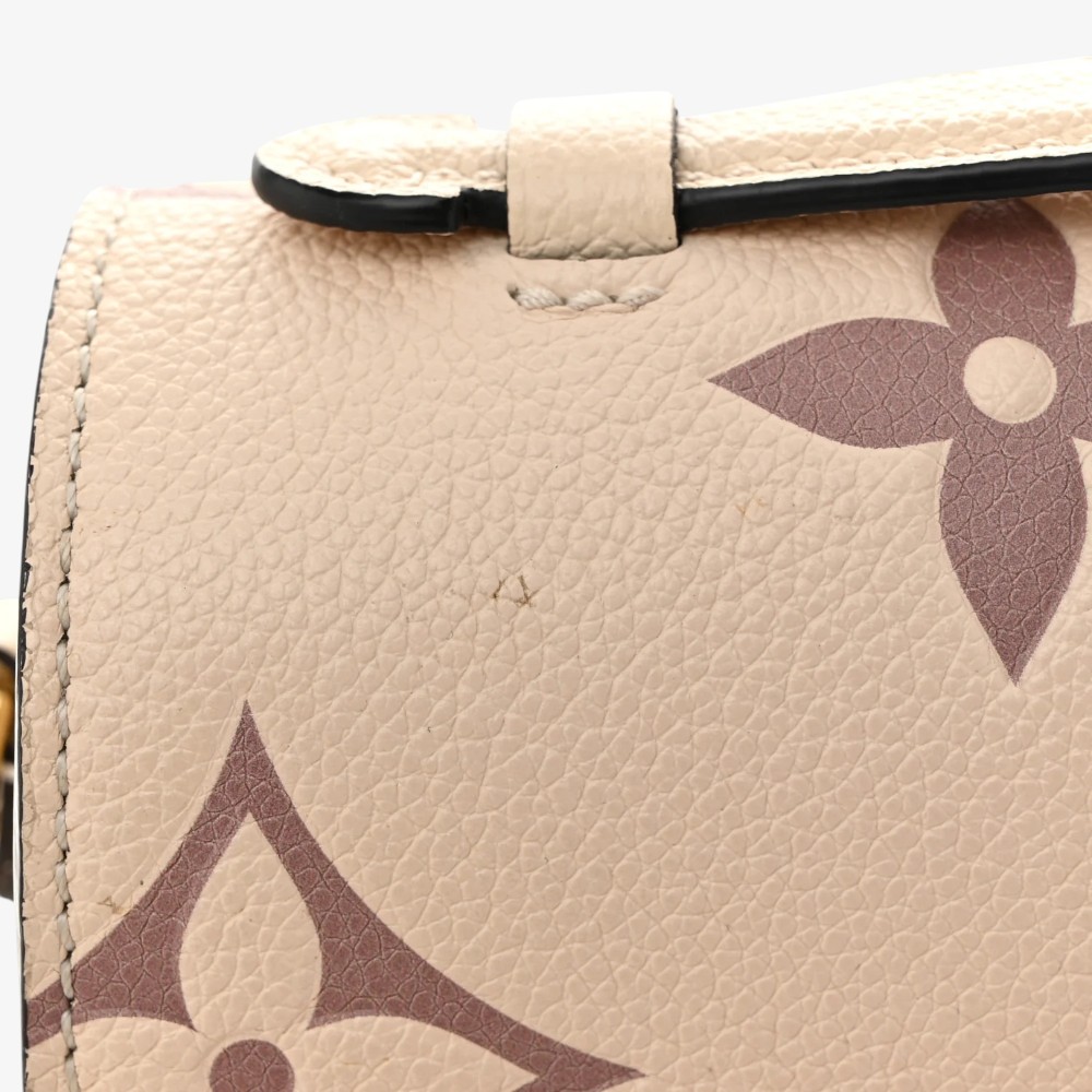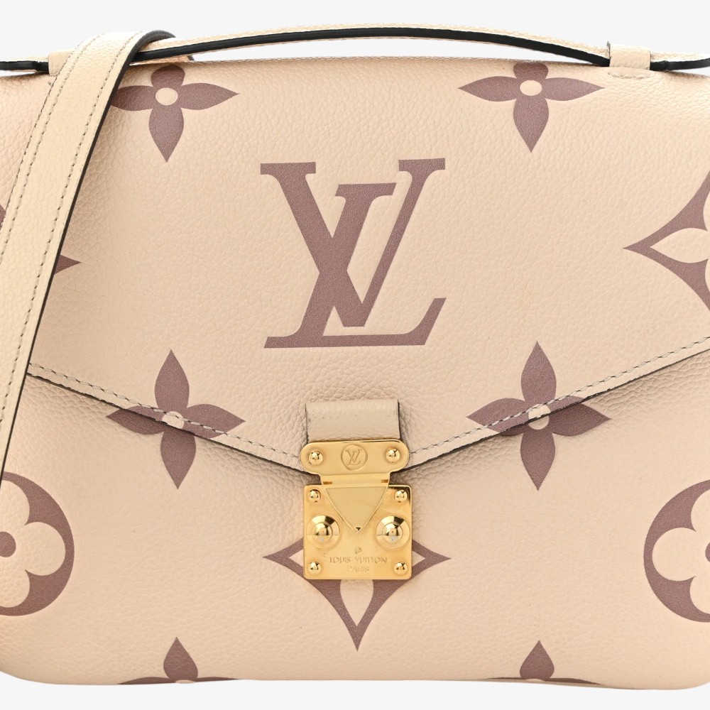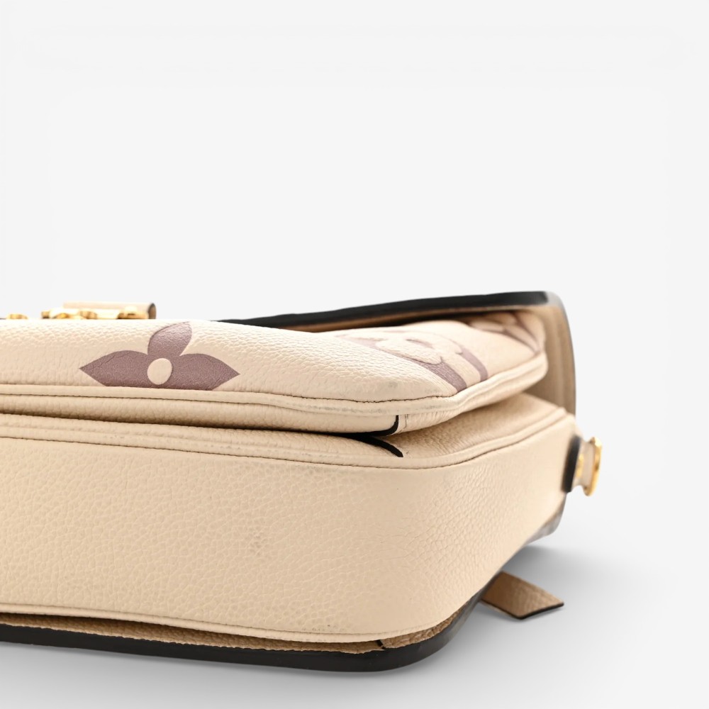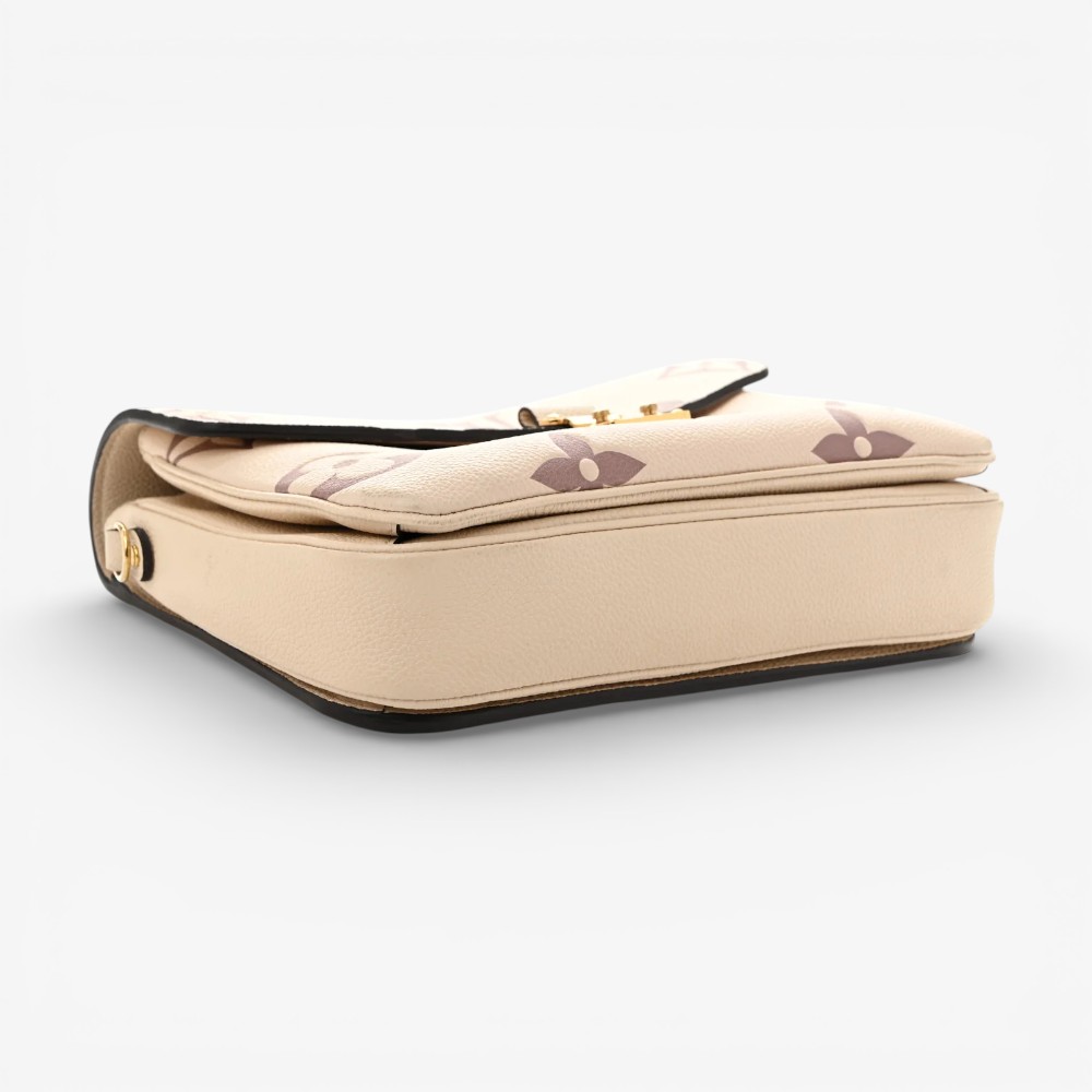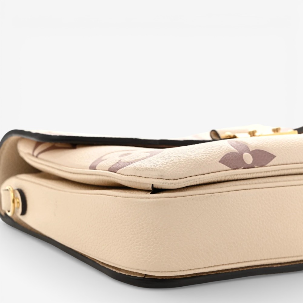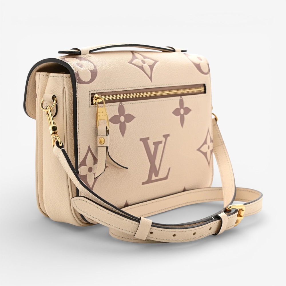 Louis Vuitton Pochette Métis in embossed Empreinte Monogram Giant leather with crème bois de rose accents and refined trim. A stylish luxury crossbody bag perfect for everyday elegance.