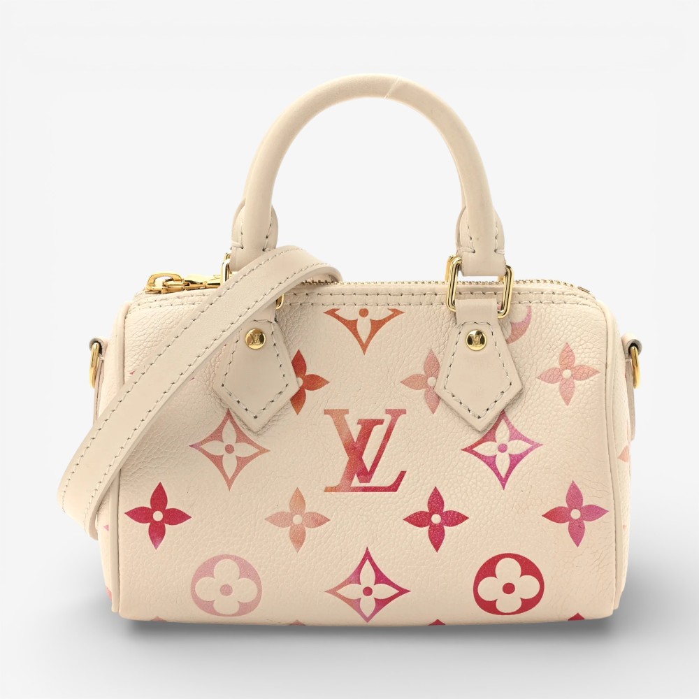 Louis Vuitton Nano Speedy in Empreinte Monogram leather with sunrise aquarelle accents and refined trim. A chic luxury mini handbag perfect for everyday essentials.