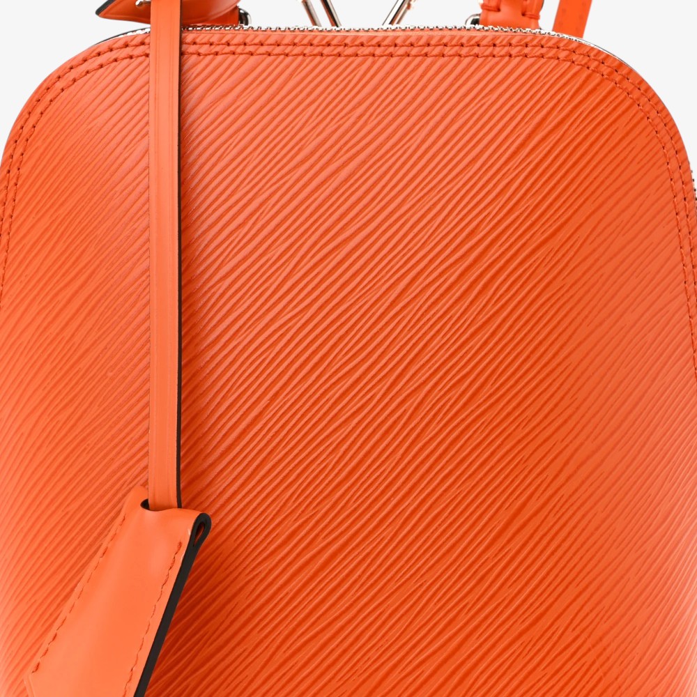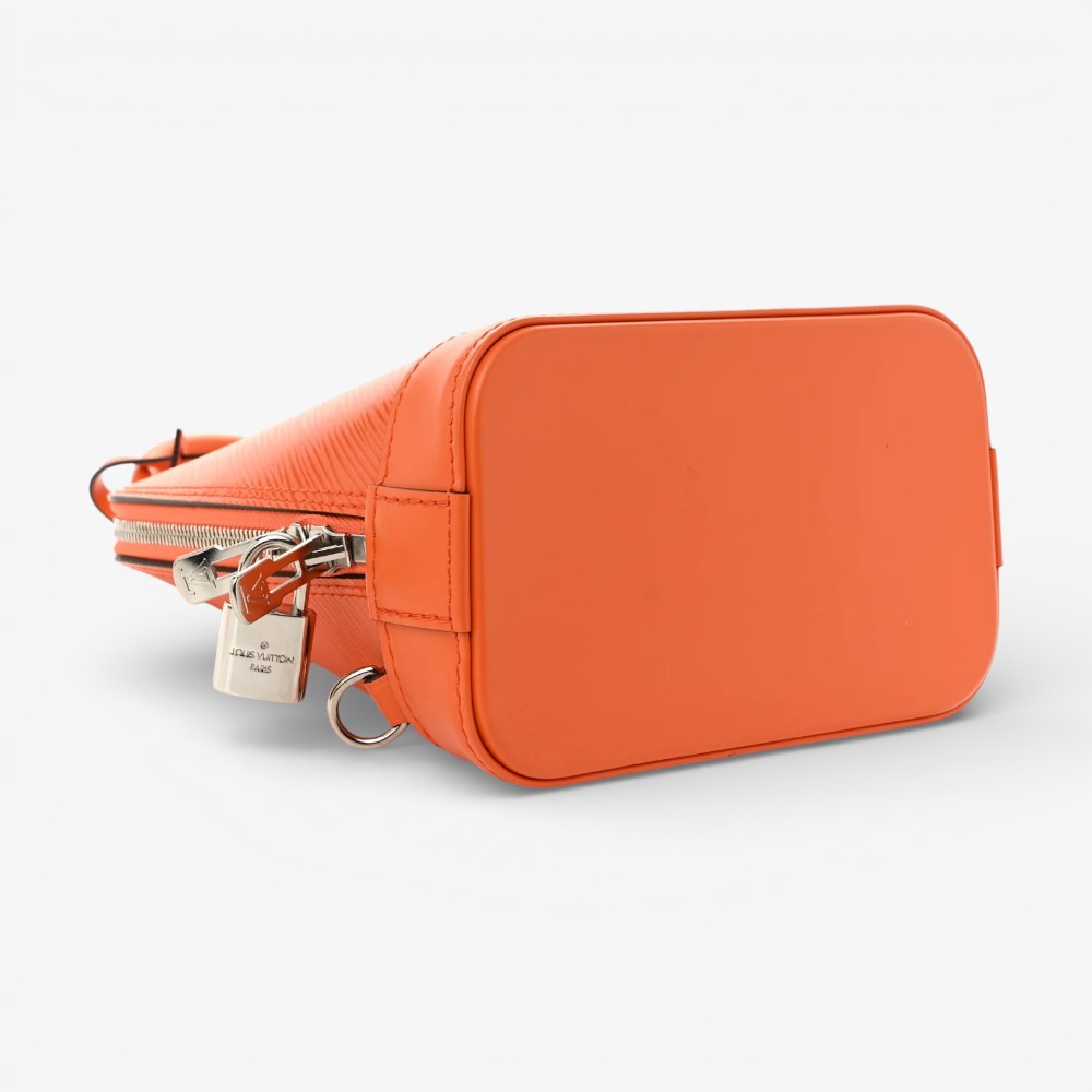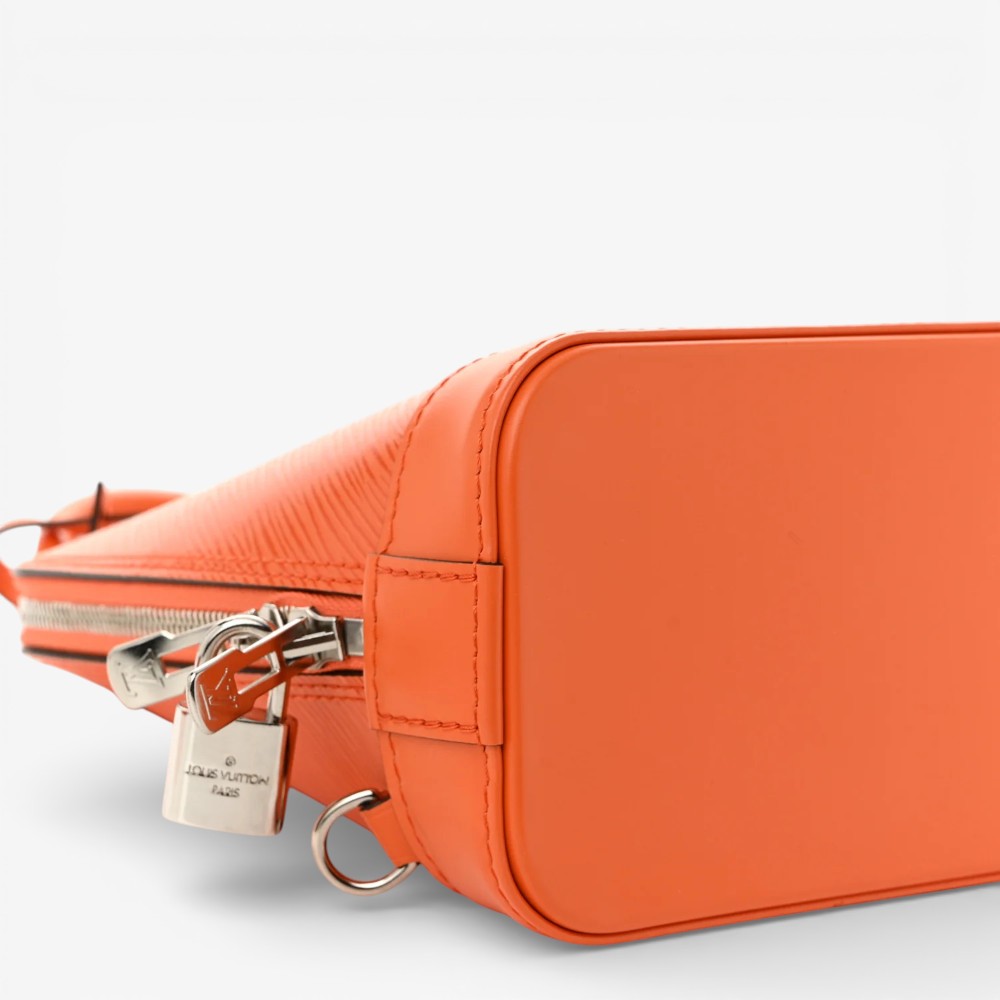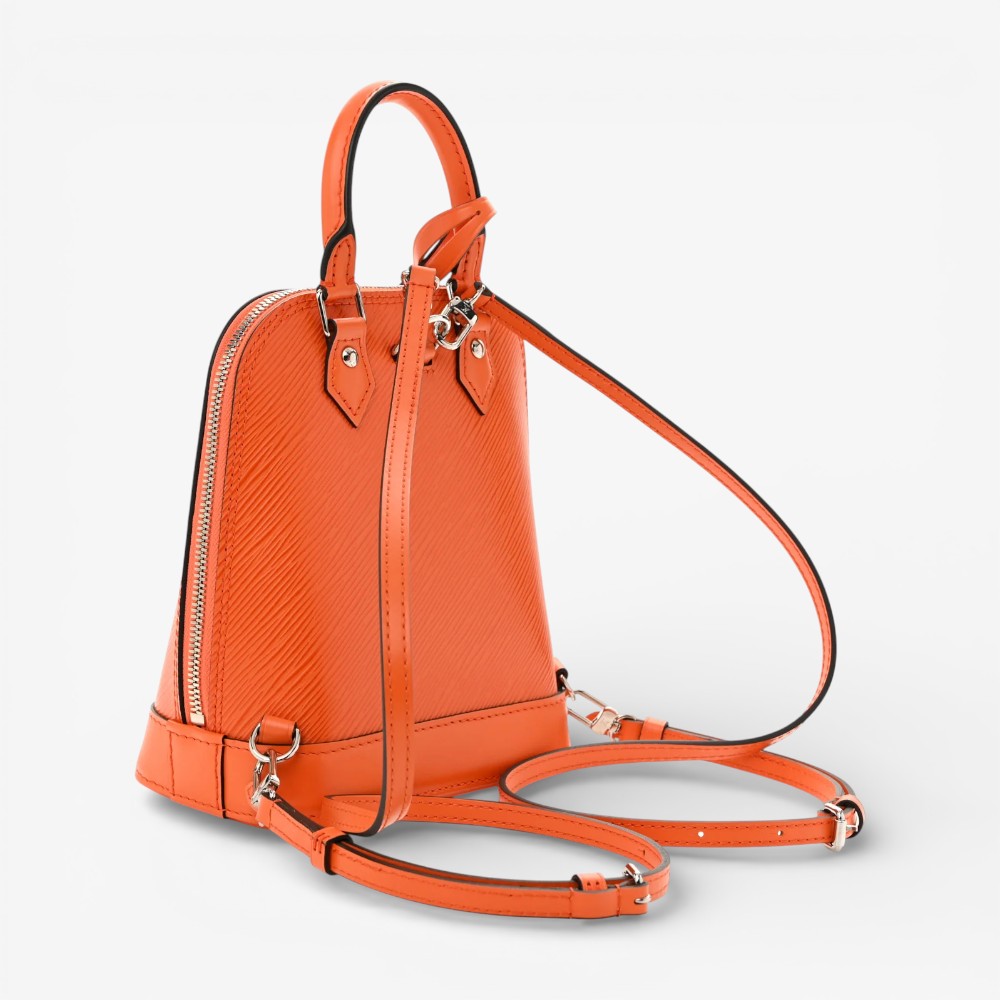Louis Vuitton Alma Backpack in vibrant orange Epi leather with refined trim and structured design. A chic luxury bag perfect for everyday sophistication.