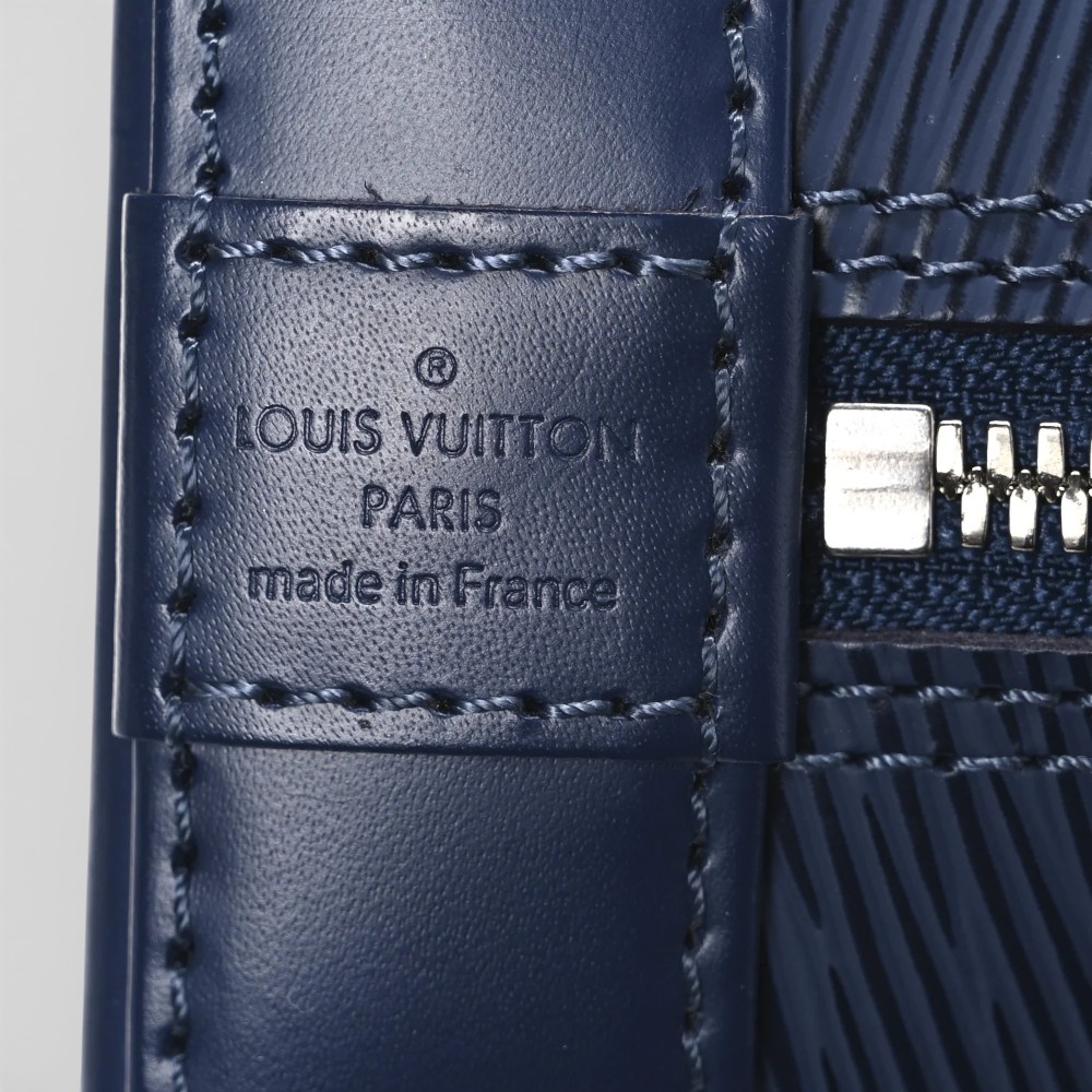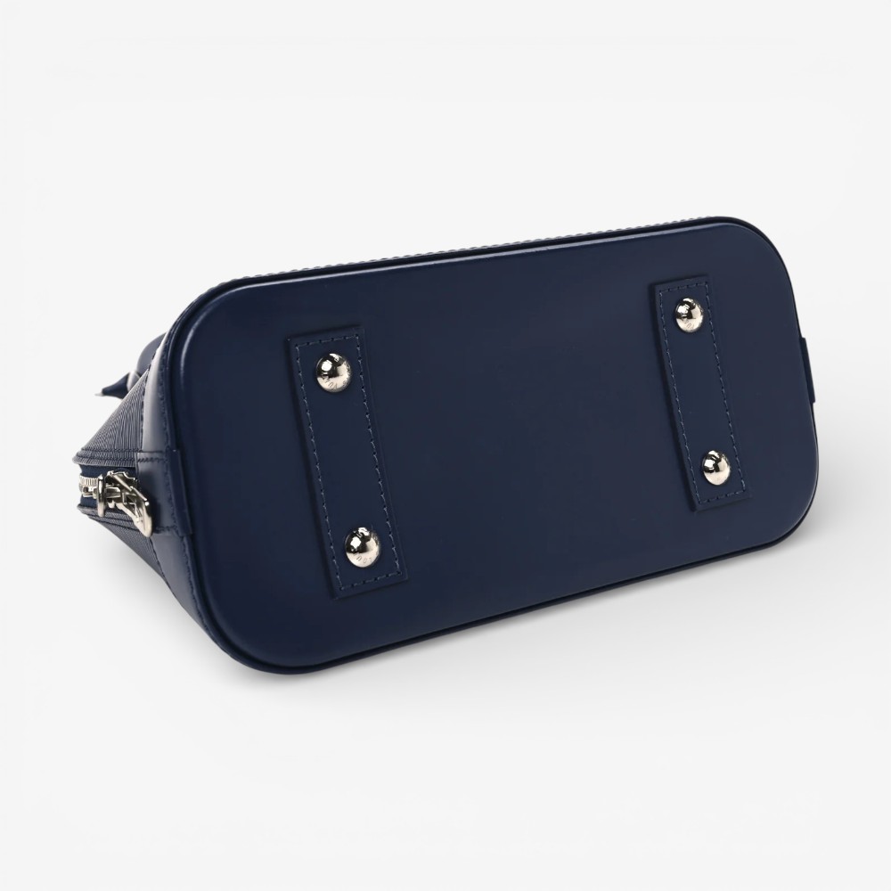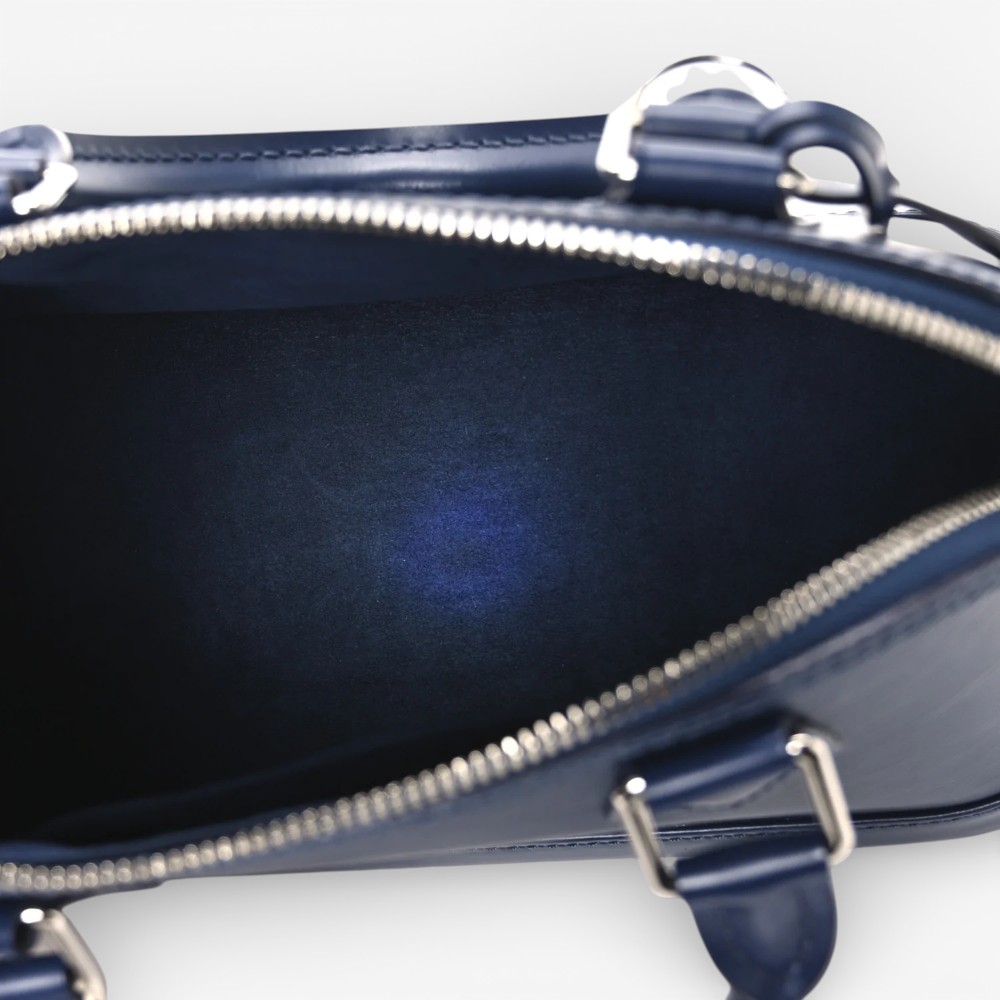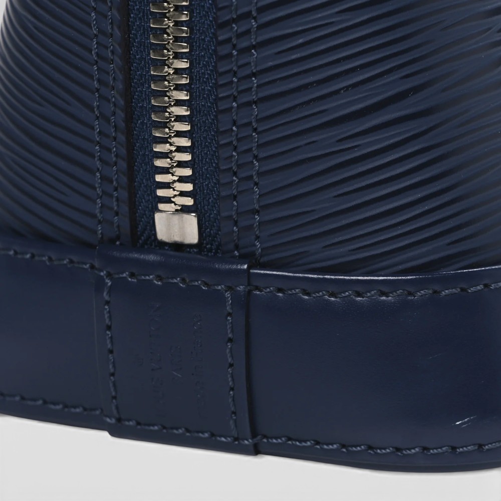 Louis Vuitton Alma BB in indigo Epi leather with refined leather trim and polished hardware. A chic luxury mini handbag perfect for everyday elegance.