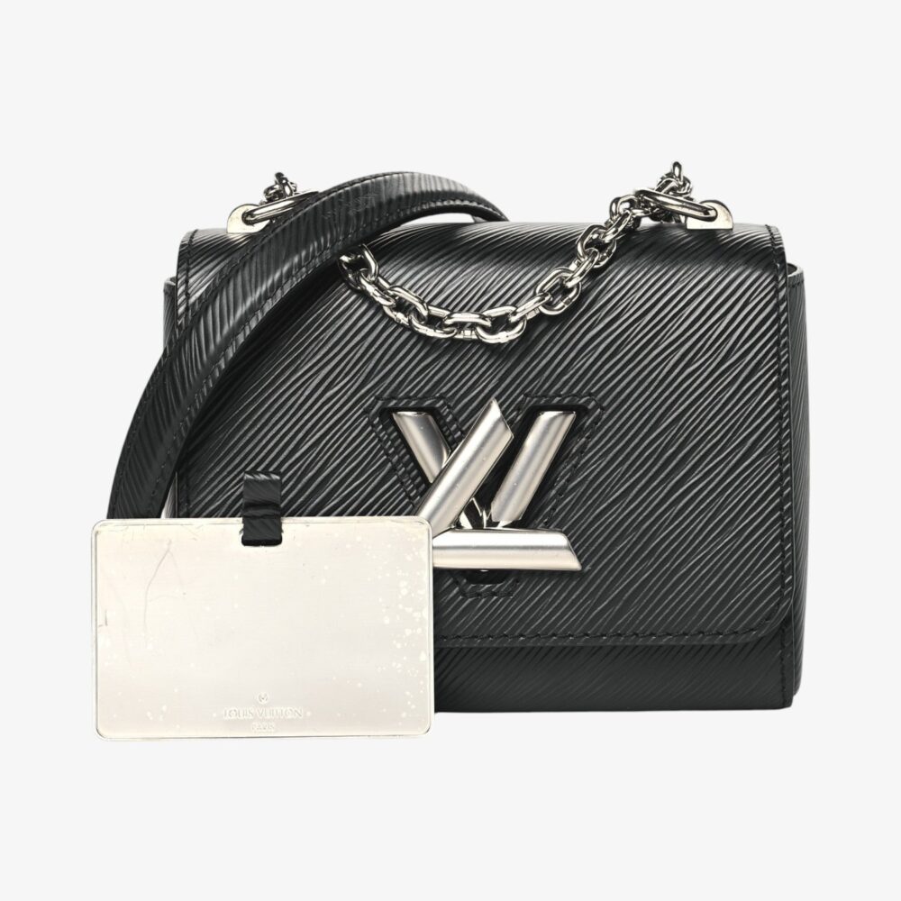 Louis Vuitton Twist Mini shoulder bag in black Epi leather with iconic LV Twist clasp. A compact luxury handbag ideal for everyday elegance.