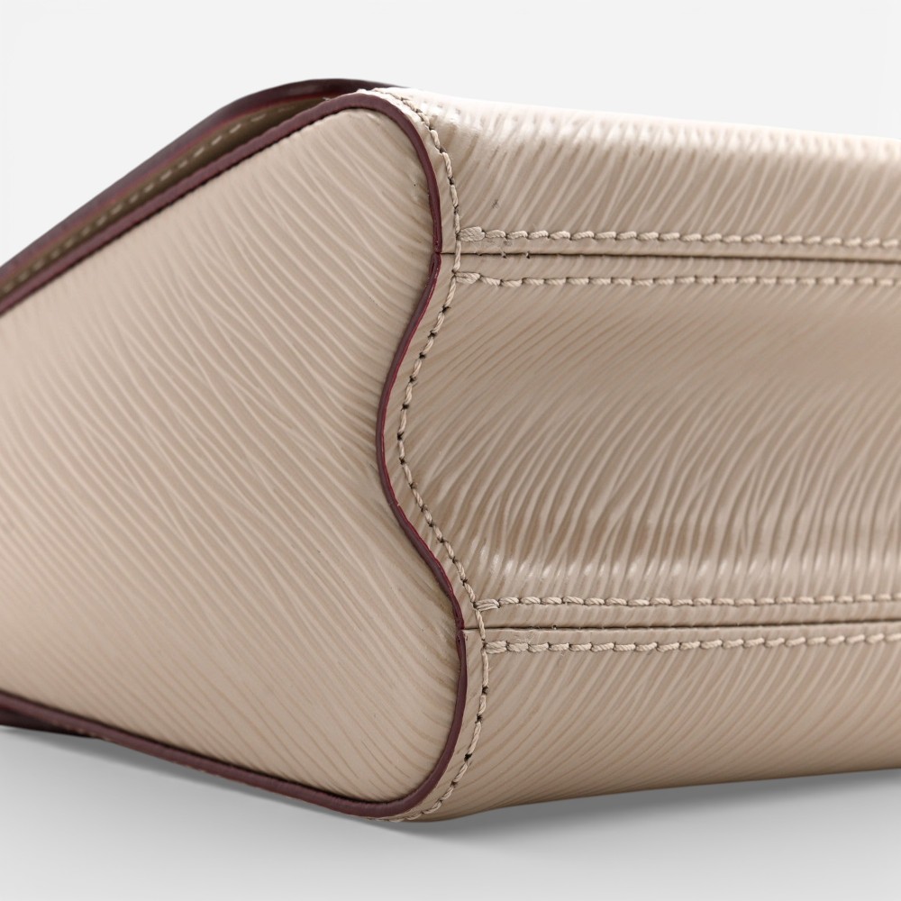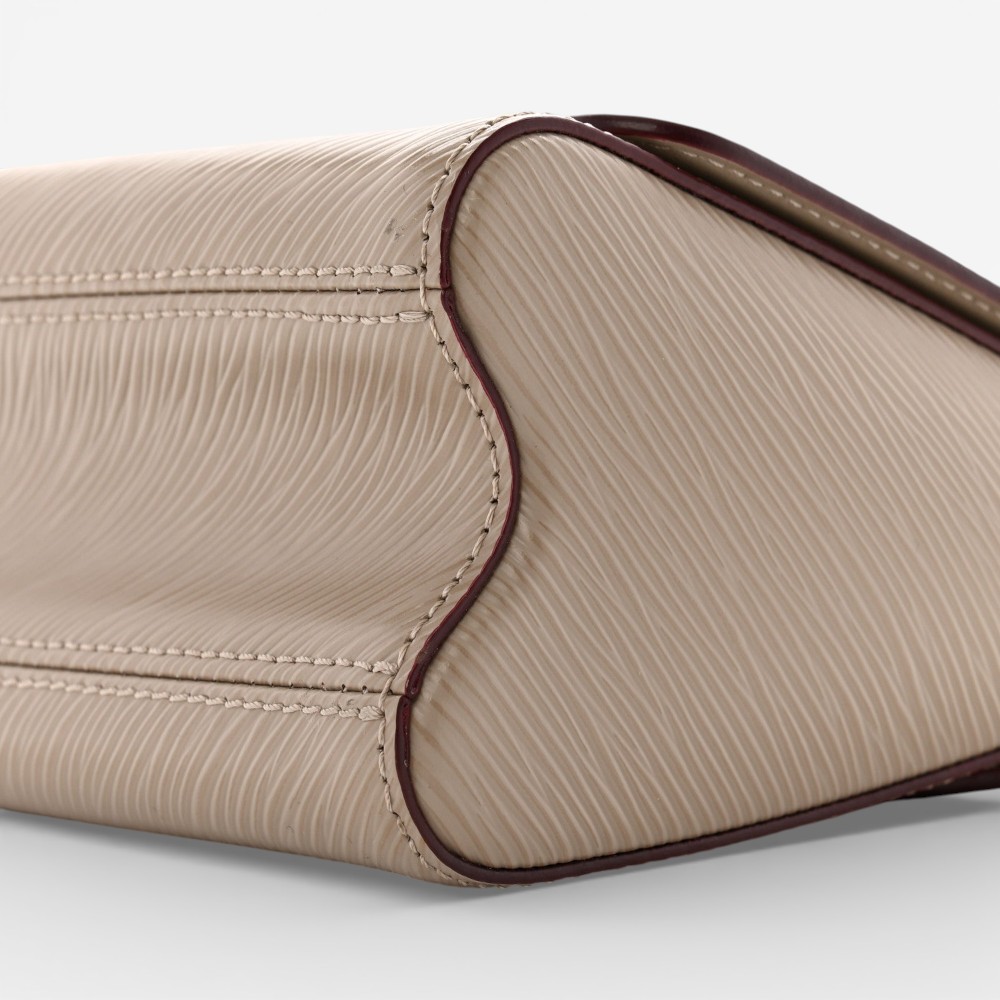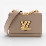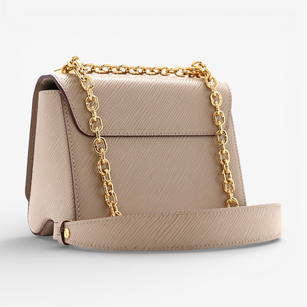 Louis Vuitton Twist PM shoulder bag in galet Epi leather with signature LV Twist clasp and refined silhouette. A chic luxury handbag perfect for everyday elegance.