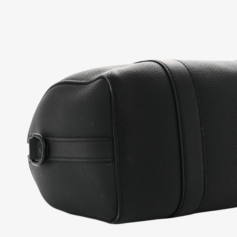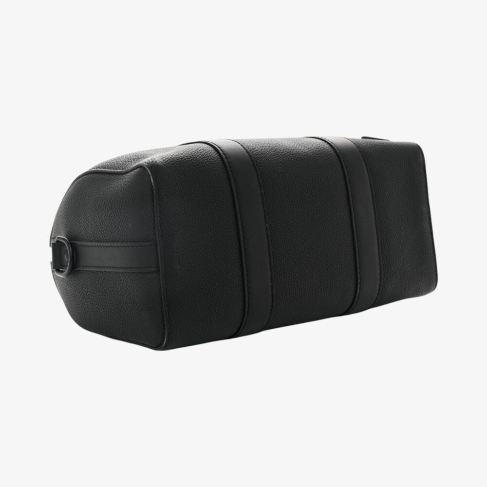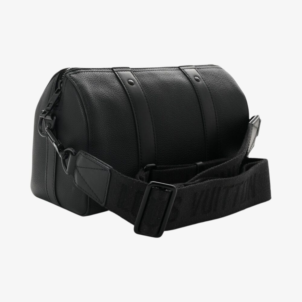 Refined Louis Vuitton City Keepall in black grained calfskin leather with subtle texture. A luxury travel bag perfect for everyday journeys and essentials.