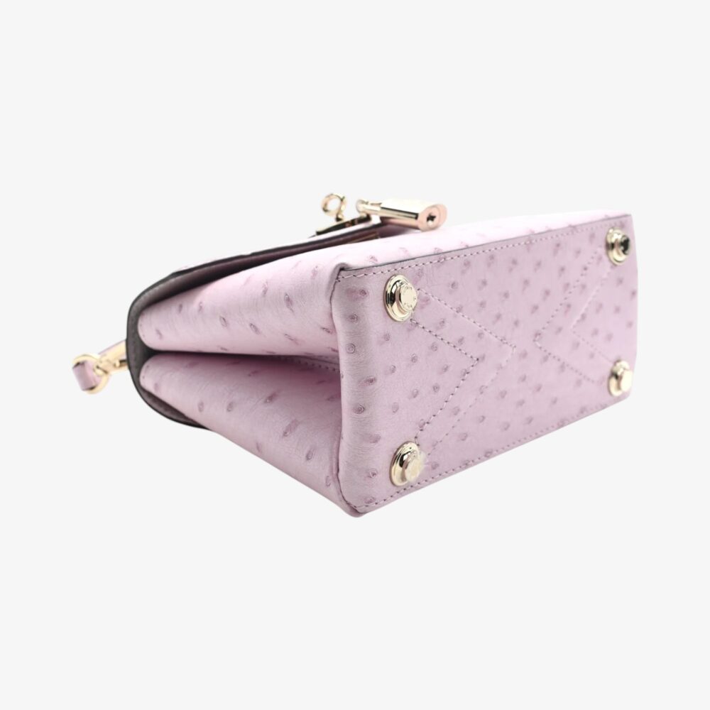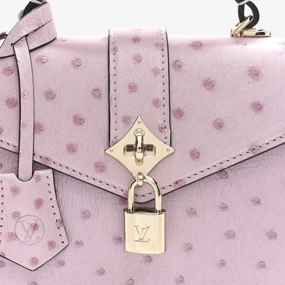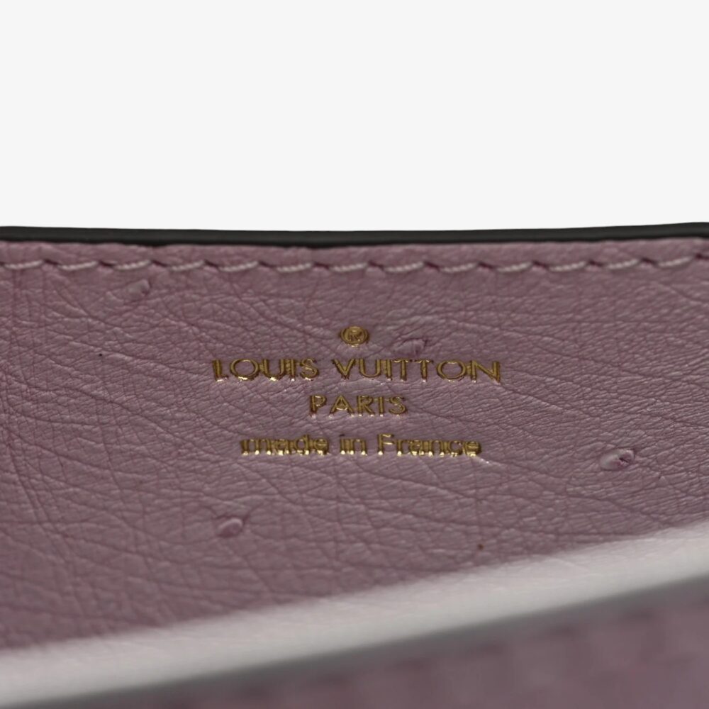 Louis Vuitton Mini bag in iridescent ostrich leather with Rose des Vents detailing and pearly lilac finish. A luxurious statement accessory for chic everyday style.