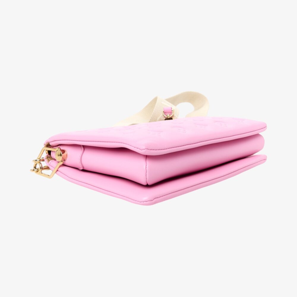The Louis Vuitton Lambskin Embossed Monogram Coussin PM Rose Bonbon features soft lambskin with embossed Monogram and a padded silhouette for standout luxury style. Designed with comfortable straps and subtle hardware for versatile carry options. This luxury designer handbag offers a compact interior ideal for daily essentials with refined sophistication. A stylish Louis Vuitton bag perfect for everyday use or elevated outfits.