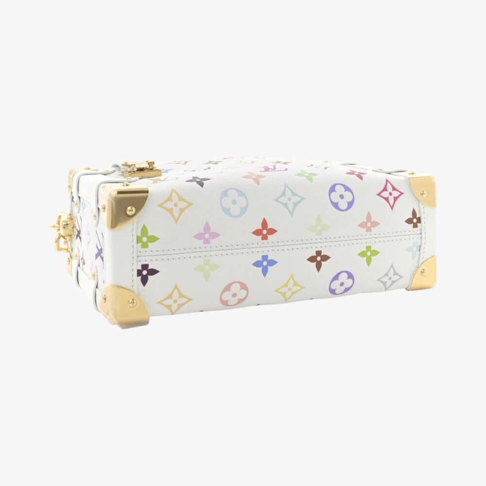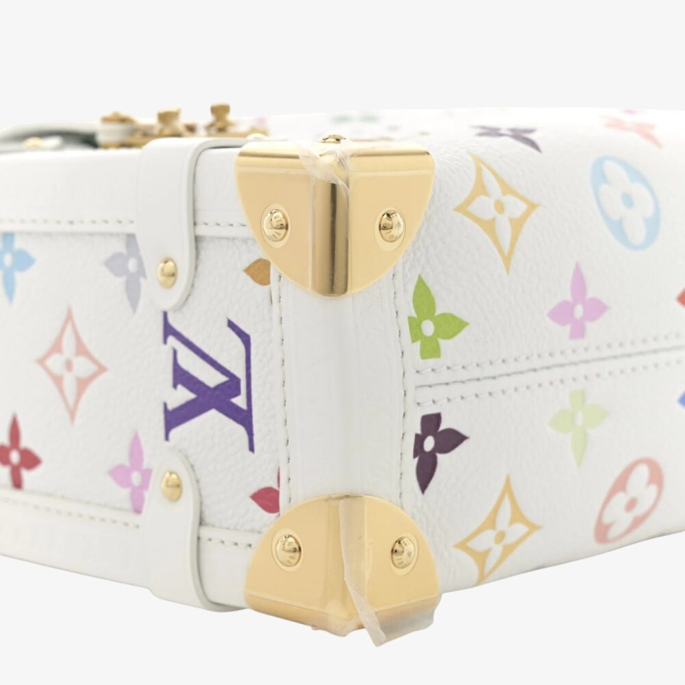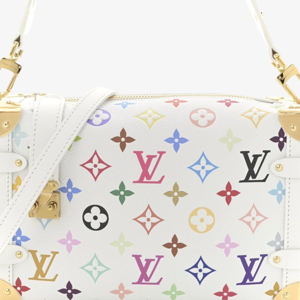 Louis Vuitton Side Trunk MM in LV x TM cowhide Monogram multicolor with white leather trim. A bold luxury handbag combining classic style and vibrant design.