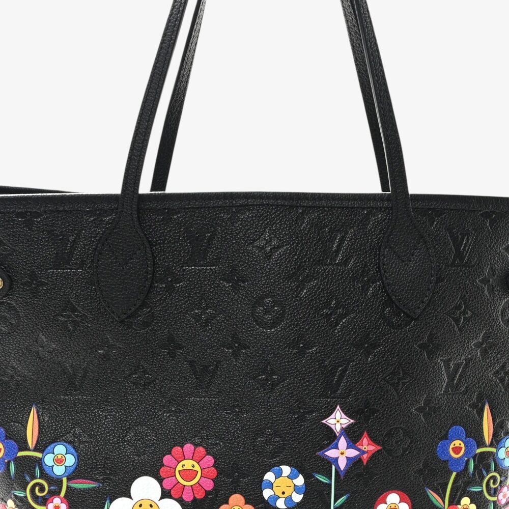 Louis Vuitton Neverfull MM in LV x TM Empreinte leather with floral motifs and refined black trim. A stylish luxury tote bag perfect for everyday elegance.