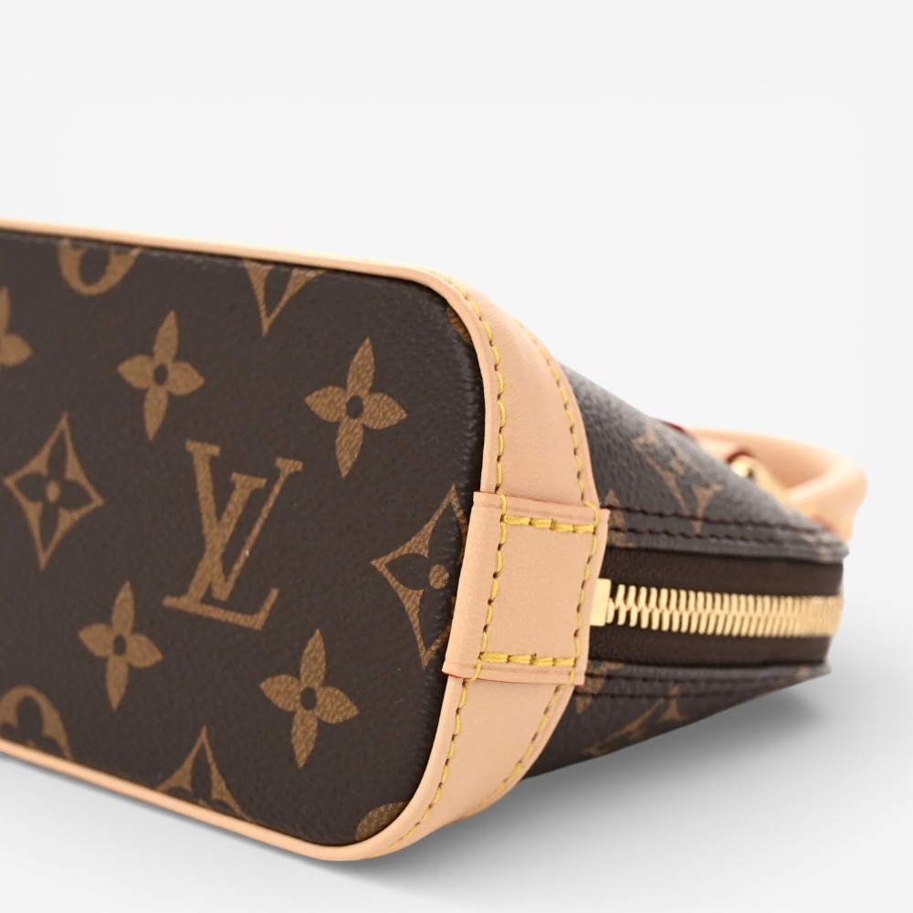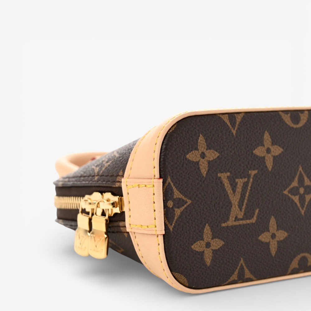 Louis Vuitton Nano Alma in LV x TM Monogram canvas with playful cerises cherry accents and refined trim. A chic luxury mini handbag perfect for everyday essentials.