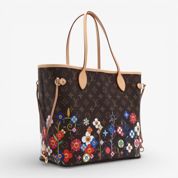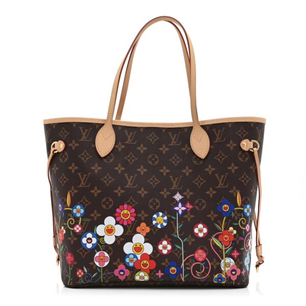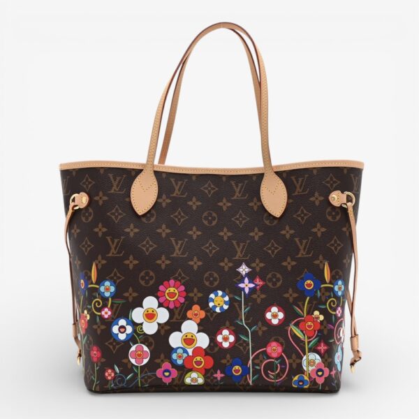 The Louis Vuitton LV x TM Monogram Flowers Neverfull MM features iconic Monogram canvas with vibrant floral detailing.