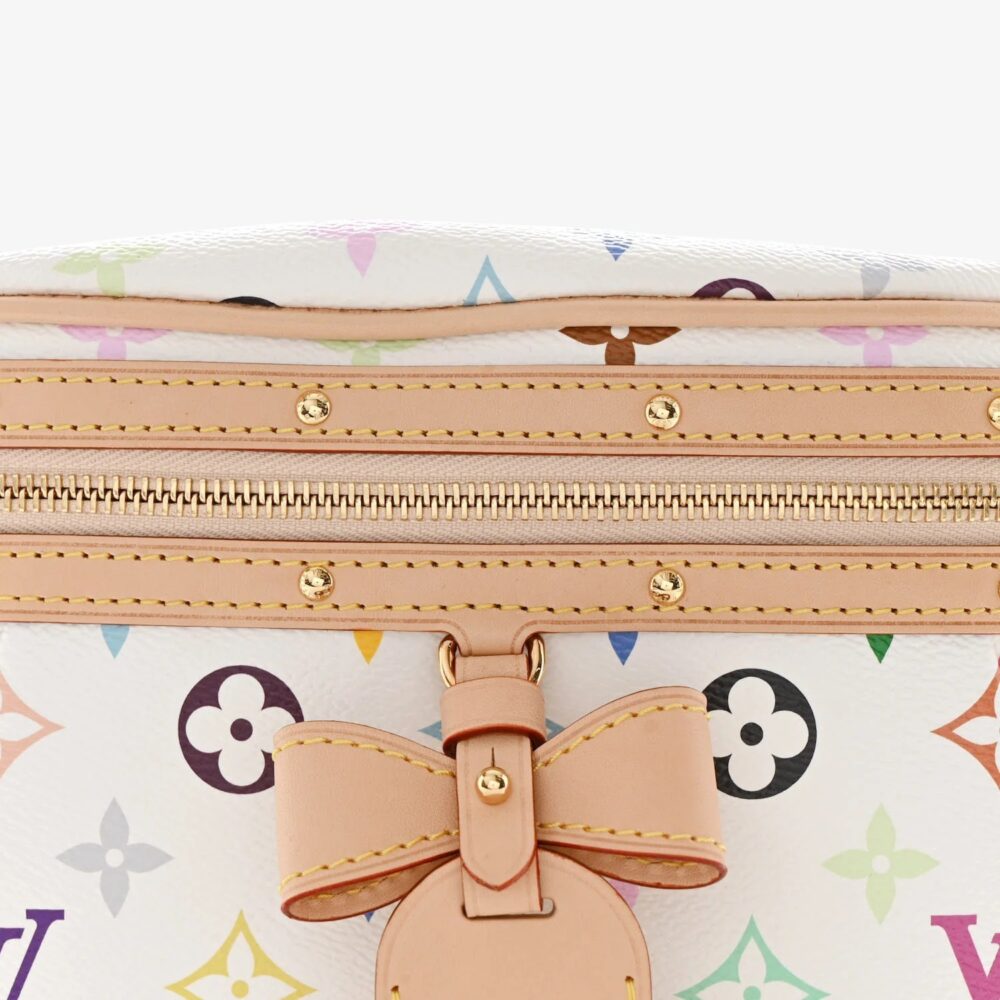 The Louis Vuitton LV x TM Monogram Multicolor High Rise Bumbag White features classic Multicolor Monogram canvas with bold graphic accents for eye-catching style. Finished with premium leather trim and polished hardware for refined luxury appeal. This luxury designer bumbag offers a compact interior ideal for essentials like phone, wallet, and keys. A chic Louis Vuitton belt bag perfect for everyday wear or travel.