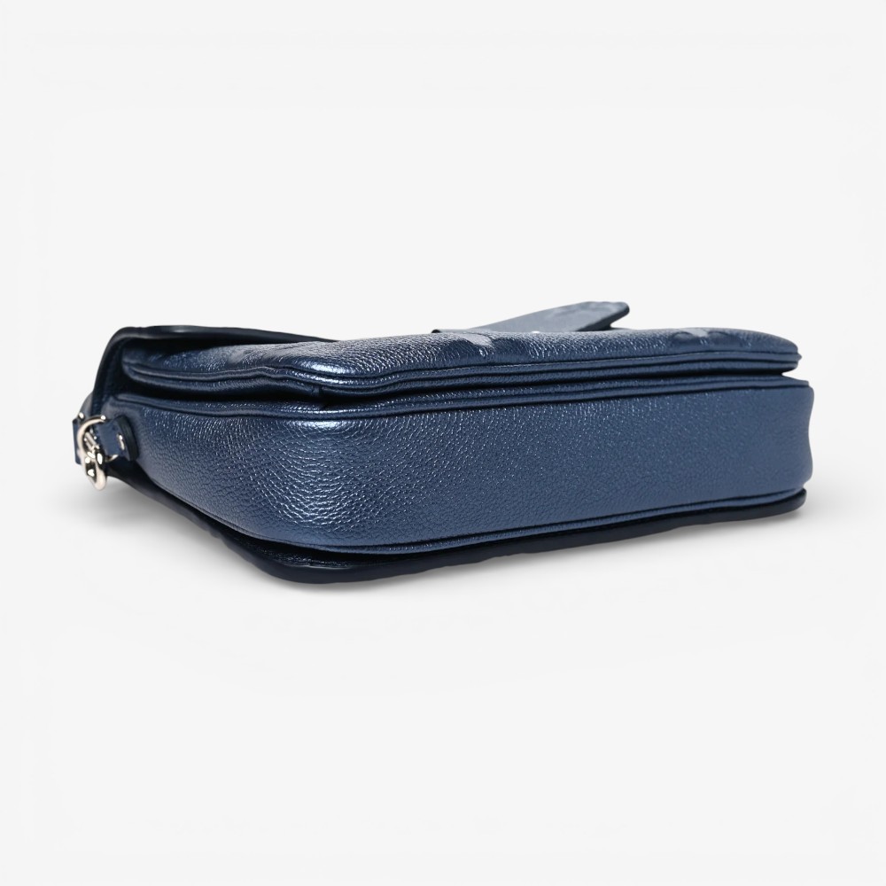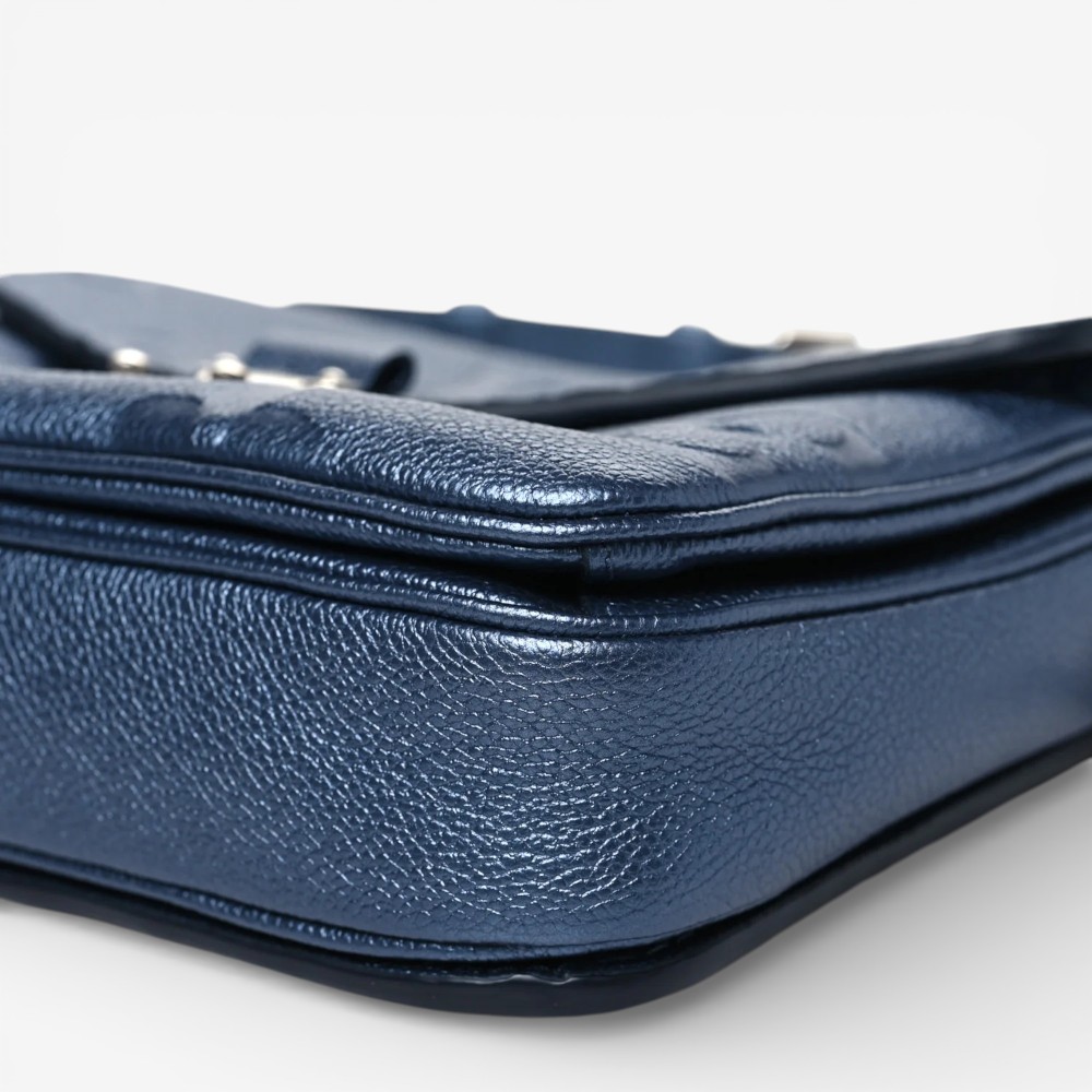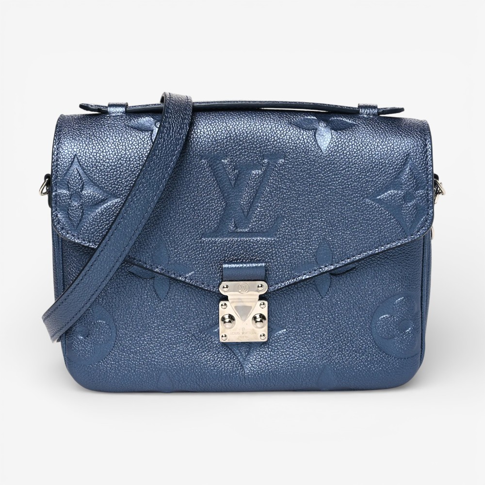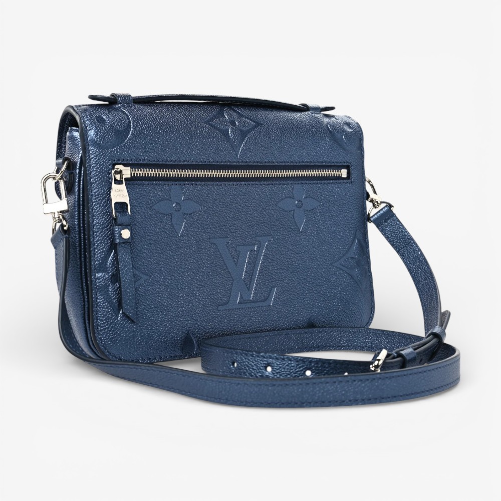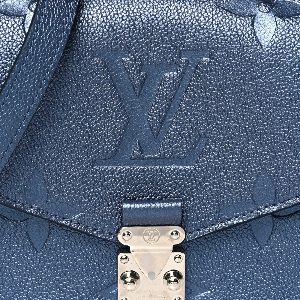 Louis Vuitton Pochette Métis in metallic embossed Empreinte Monogram Giant leather with navy nacre accents. A stylish luxury crossbody bag perfect for everyday elegance.