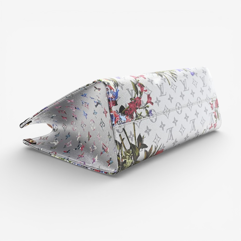 The Louis Vuitton Metallic Monogram LV Garden Onthego MM Silver features eye-catching metallic Monogram LV Garden canvas with shimmering silver tones for standout luxury style. Designed with leather top handles and long shoulder straps for versatile, comfortable carry options. This luxury designer tote bag offers a roomy interior ideal for daily essentials with refined sophistication. A chic Louis Vuitton tote bag perfect for everyday use or elevated casual outfits. 41 x 32 x 16.5 cm (Length x Height x Width)