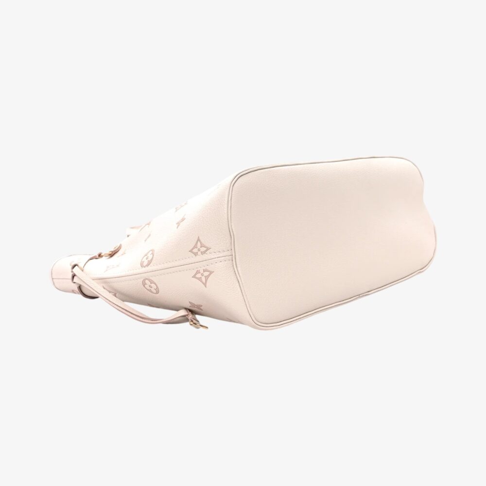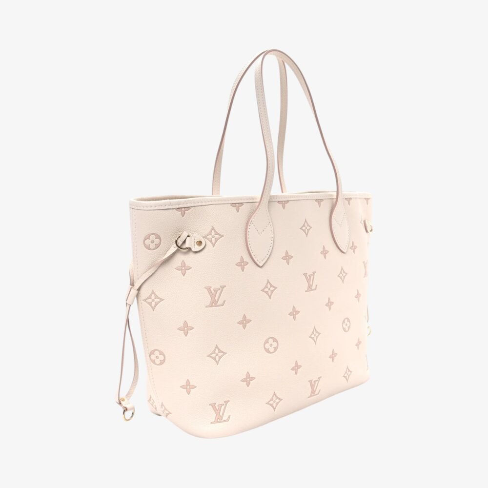 The Louis Vuitton Monogram Debossed Neverfull MM Eden features subtle debossed Monogram pattern for refined texture and style.