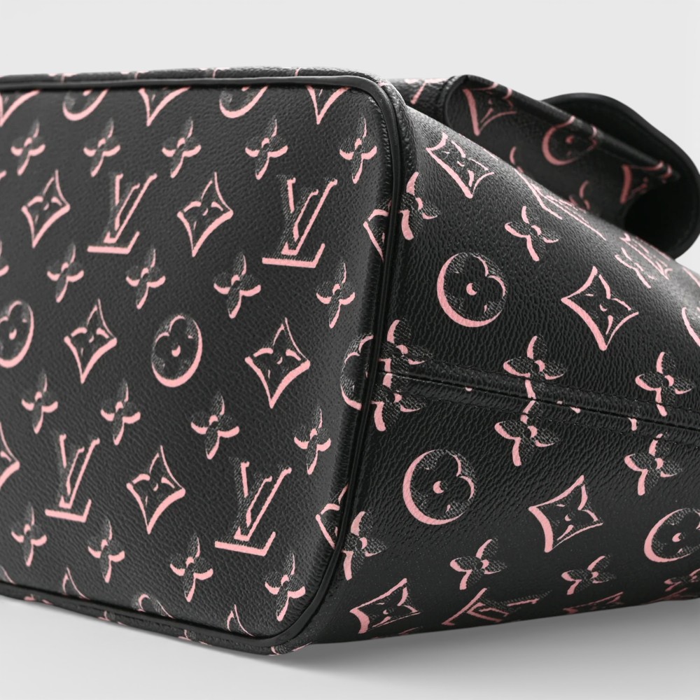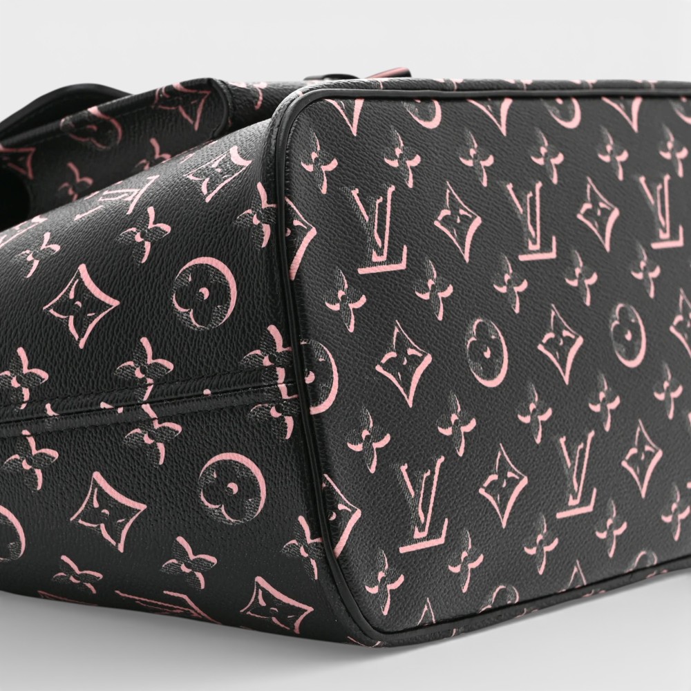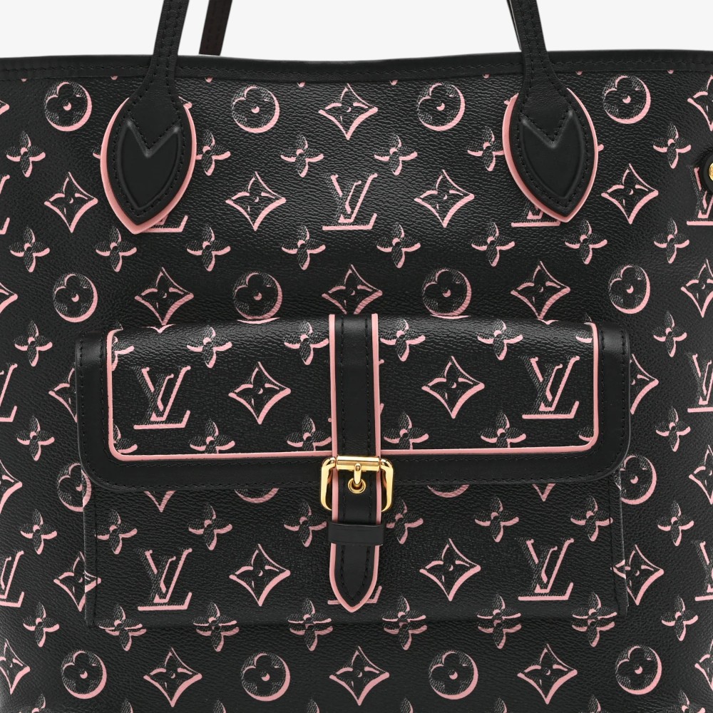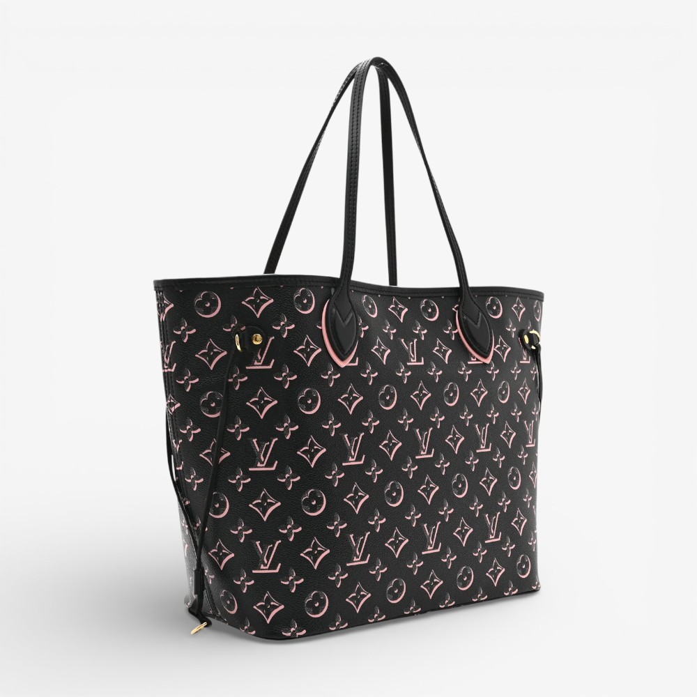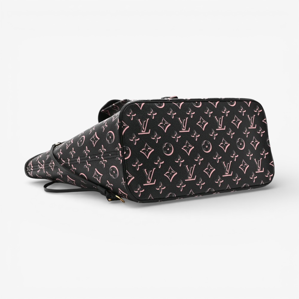 Louis Vuitton Neverfull MM in Monogram Fall For You canvas with bold black accents and playful design. A stylish luxury tote bag perfect for everyday use.