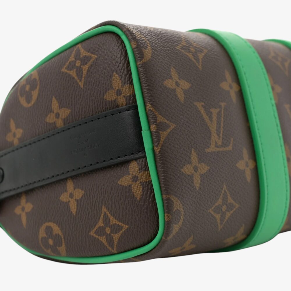 The Louis Vuitton Monogram Macassar Keepall Bandoulière 25 features bold Monogram Macassar canvas with refreshing minty green detailing for standout luxury appeal. Finished with premium leather trim and sturdy handles for elevated designer quality. This luxury travel bag offers a compact interior ideal for essentials like phone, wallet, and keys. A stylish Louis Vuitton duffle bag perfect for travel or everyday use.