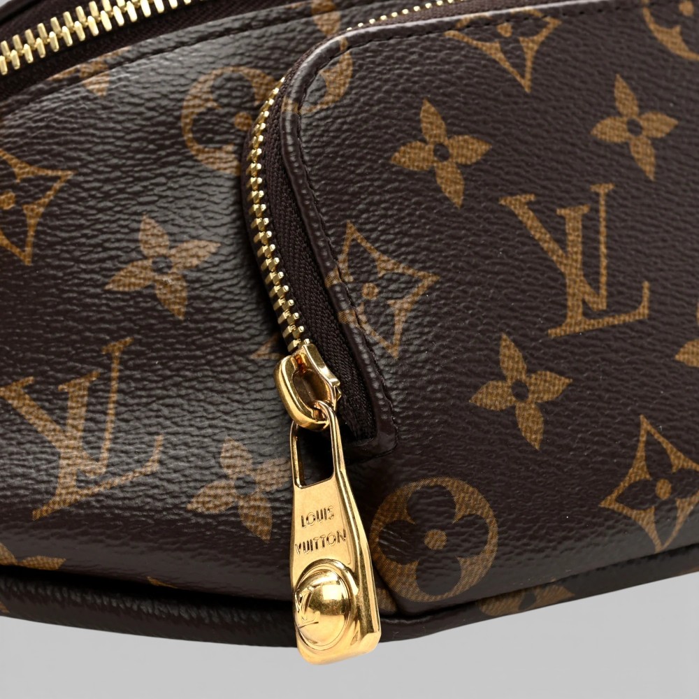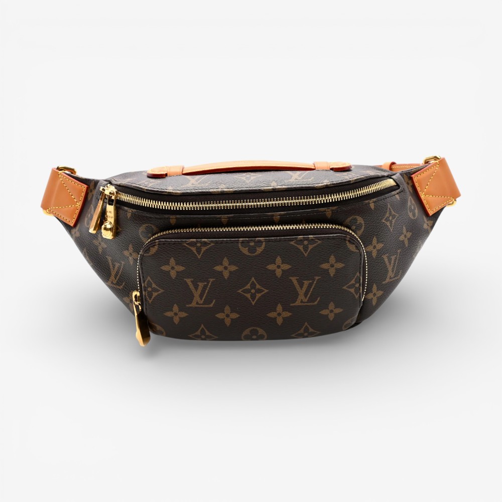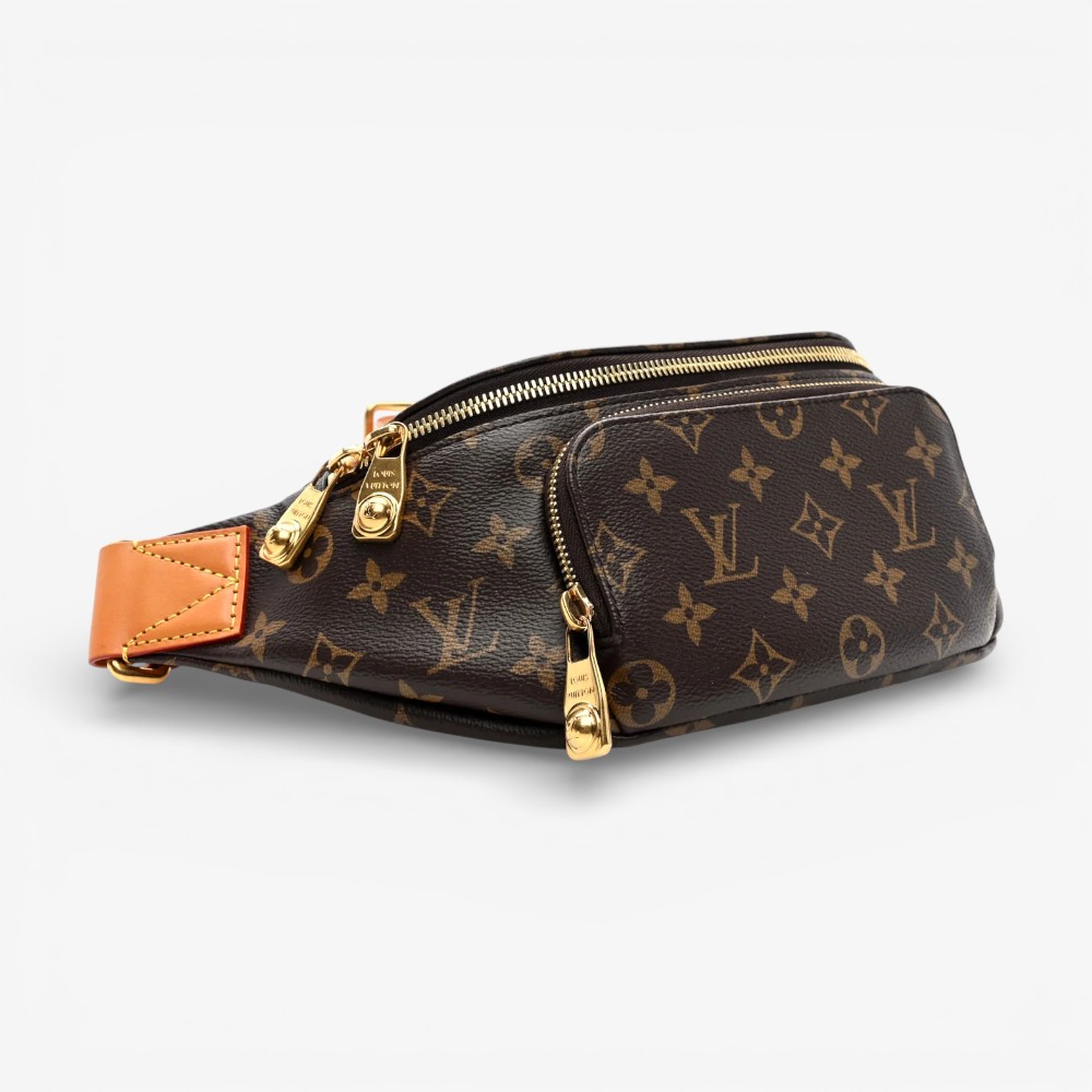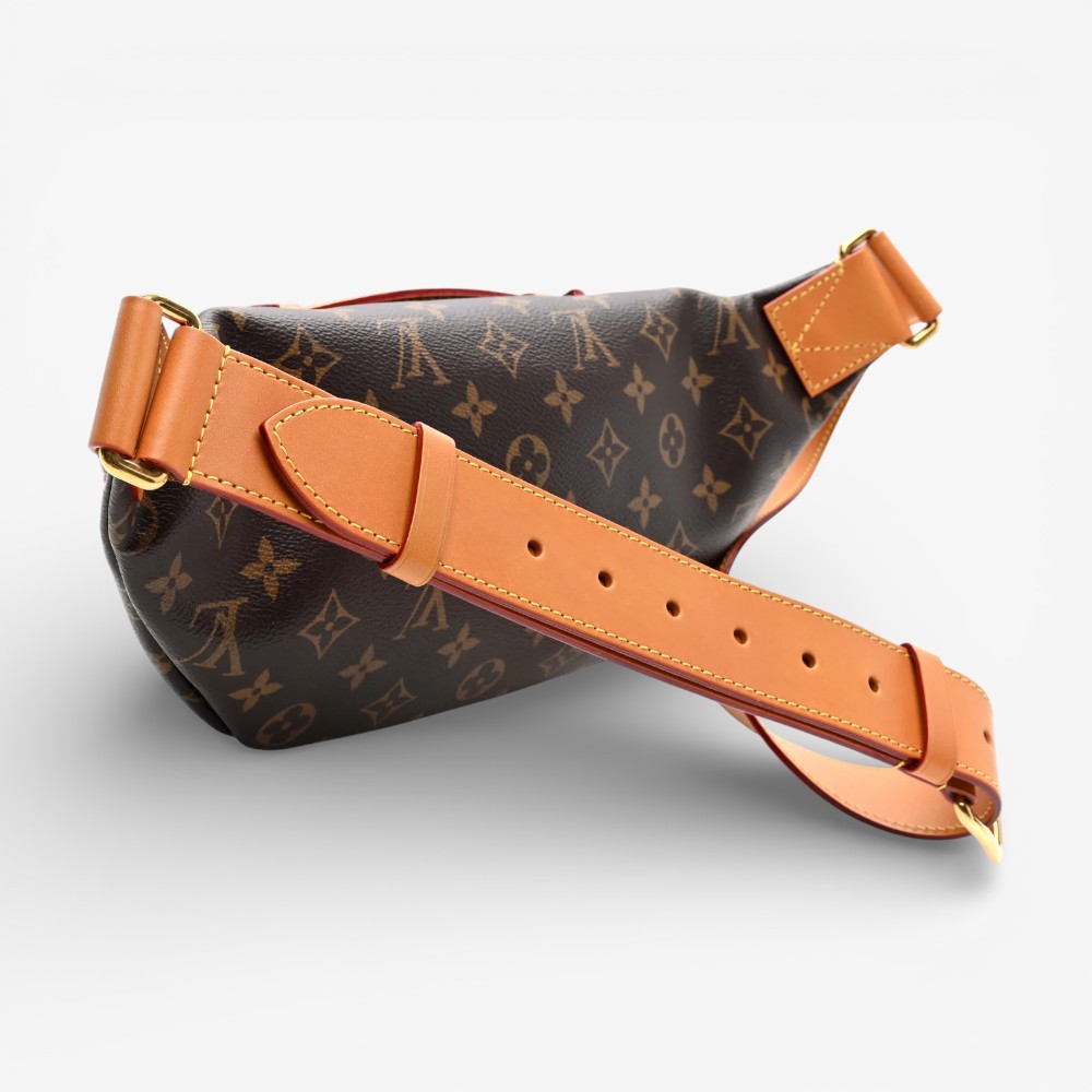 Louis Vuitton Rush Bumbag in classic Monogram canvas with refined leather trim. A stylish luxury bag perfect for hands-free everyday use.