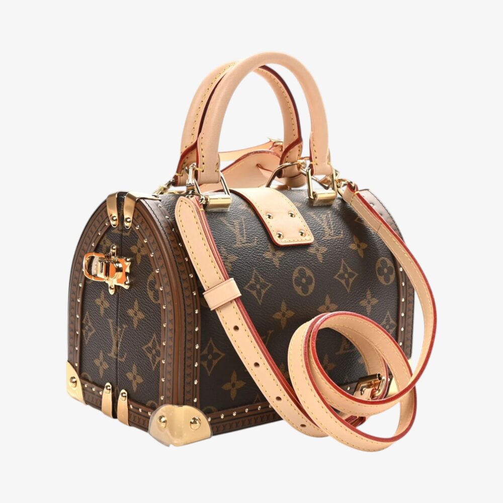 Louis Vuitton Speedy Trunk 20 in classic Monogram canvas with elegant leather trim and polished hardware. A compact luxury handbag perfect for refined everyday style.