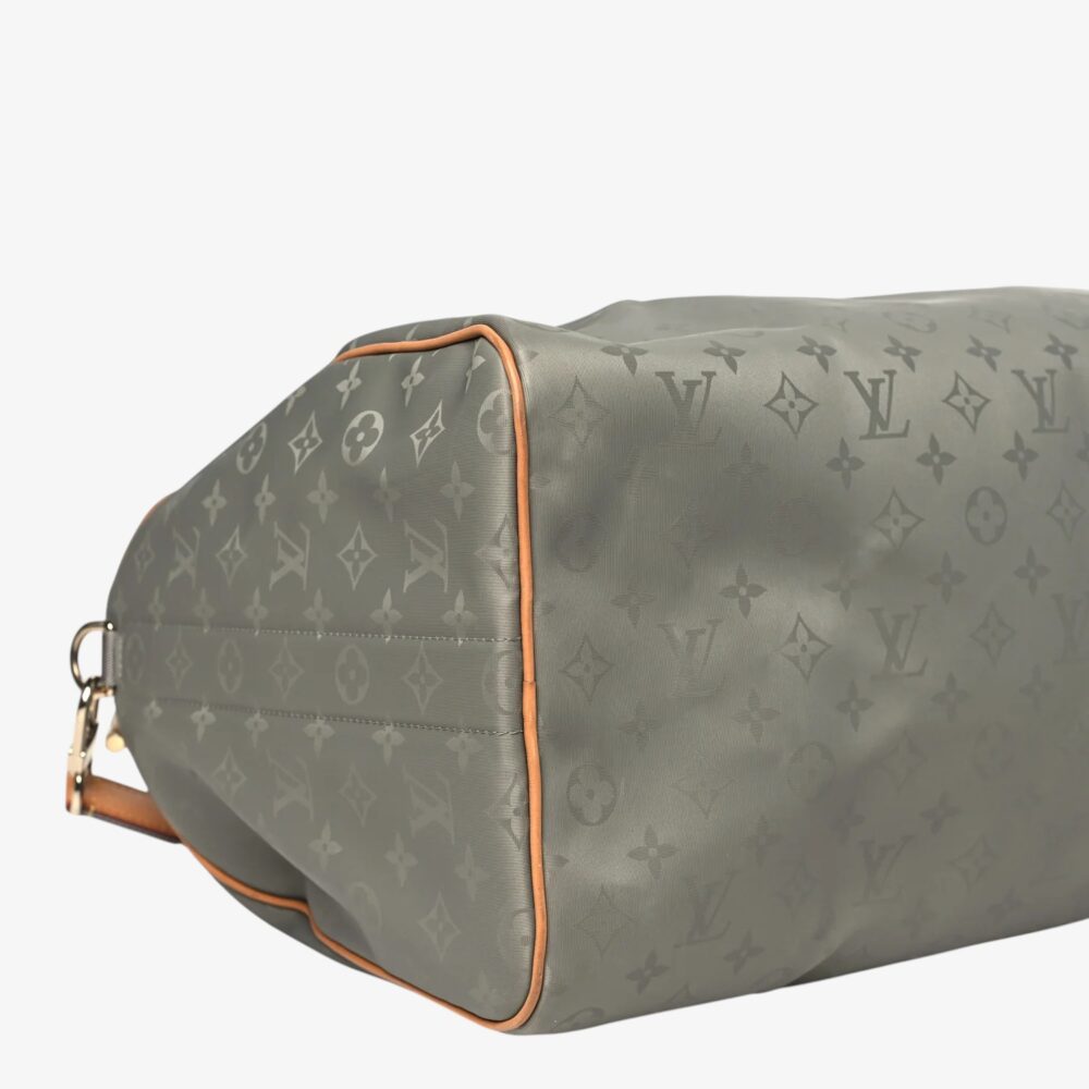Modern Louis Vuitton Keepall 50 in Monogram Titanium canvas with sleek grey tones. A luxury travel bag that combines bold design with everyday functionality.