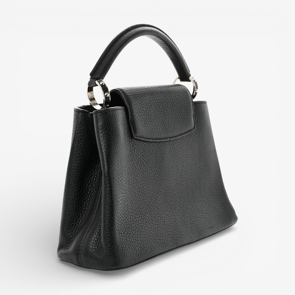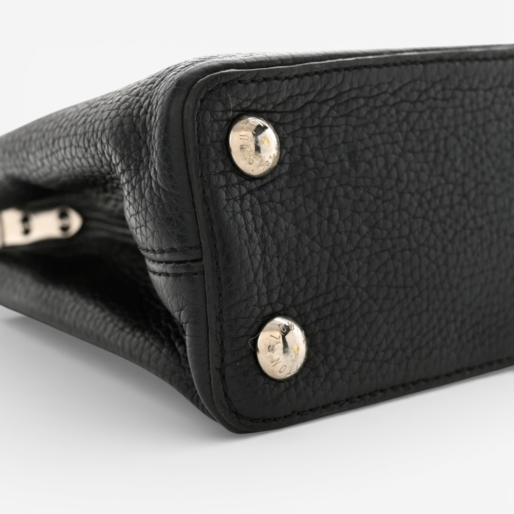Louis Vuitton Capucines BB in classic black Taurillon leather with refined hardware. A chic luxury handbag perfect for everyday elegance.